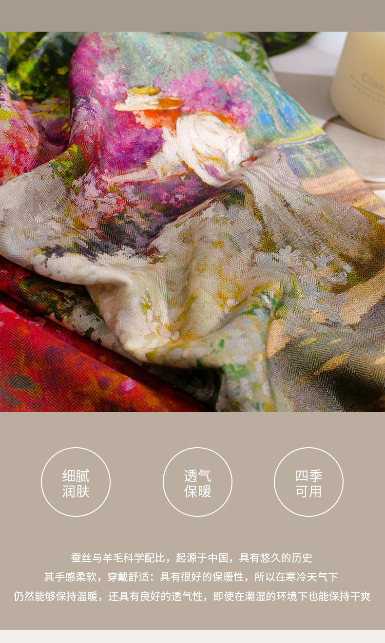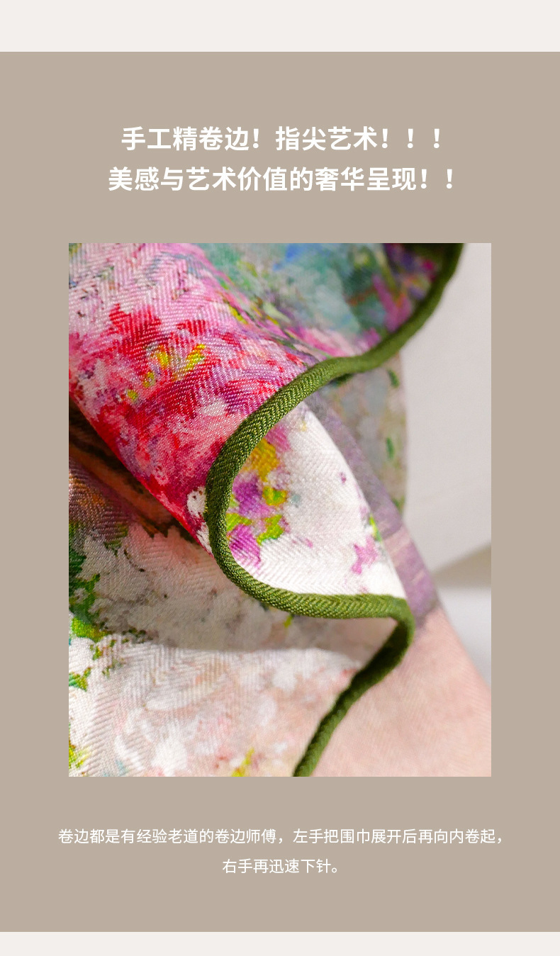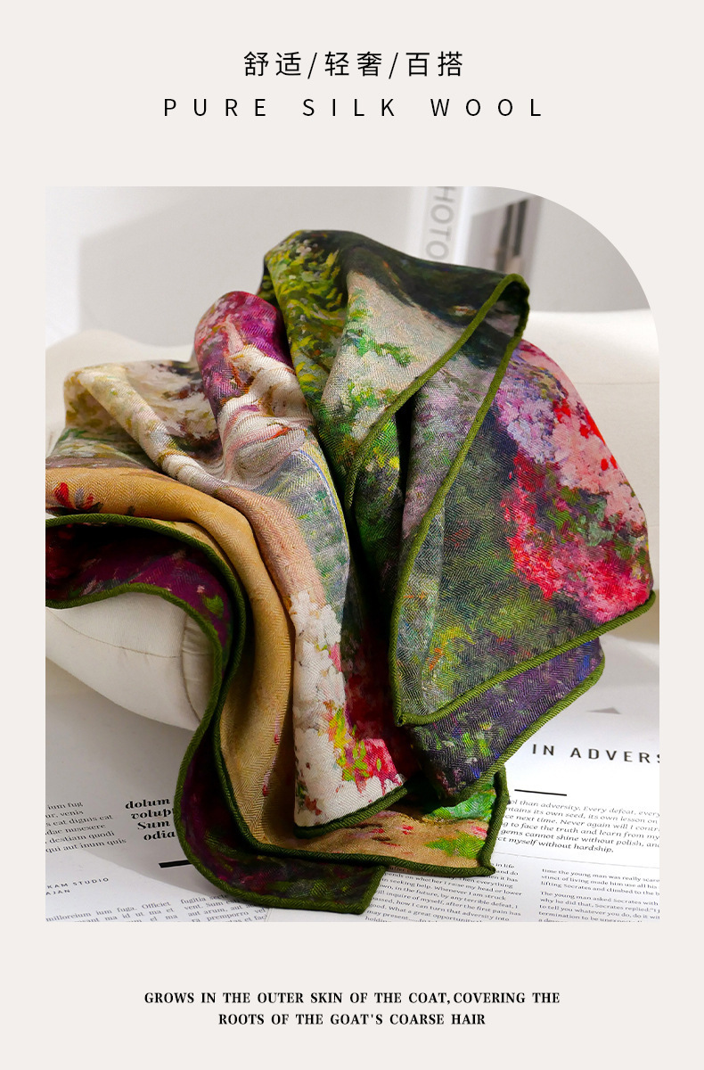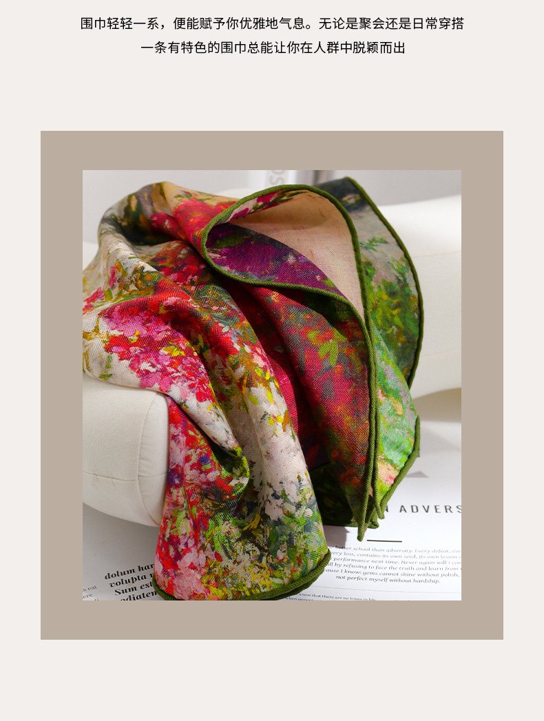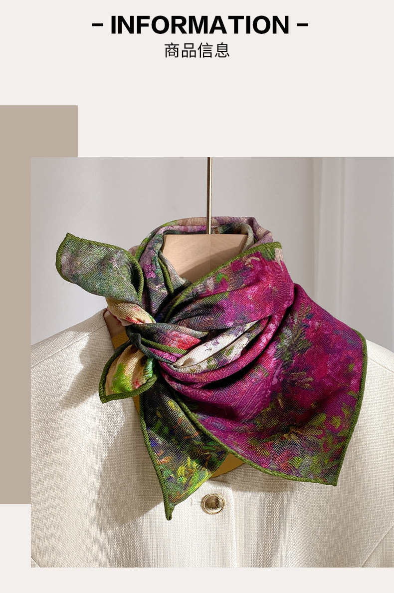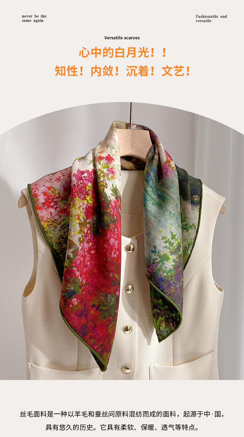 마을 정원 ~ 실크 울 스카프 여성 봄과 가을 실크 양모 65*65cm 사각형 스카프 다기능 목도리 후
