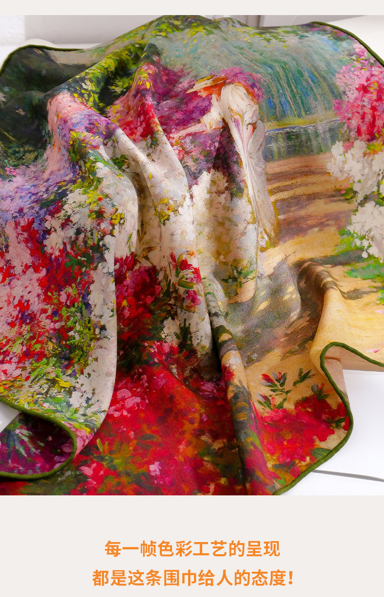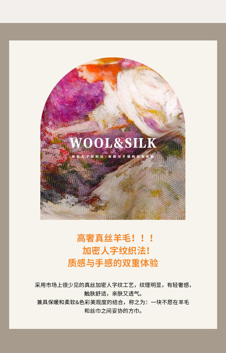 마을 정원 ~ 실크 울 스카프 여성 봄과 가을 실크 양모 65*65cm 사각형 스카프 다기능 목도리 후스토어 가기