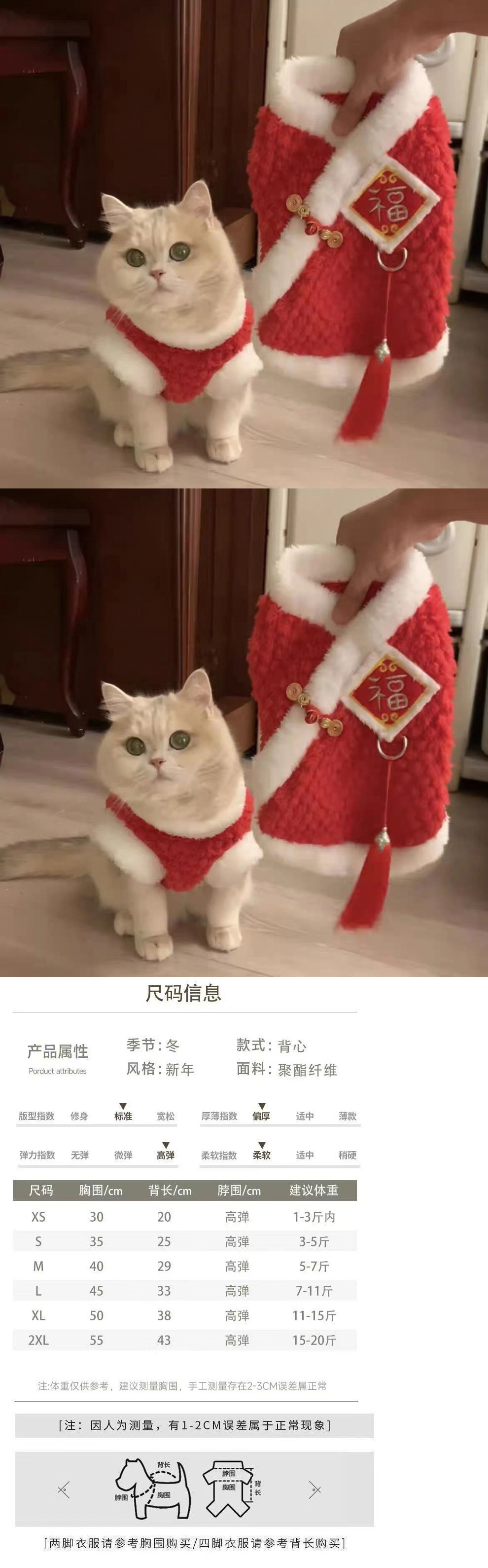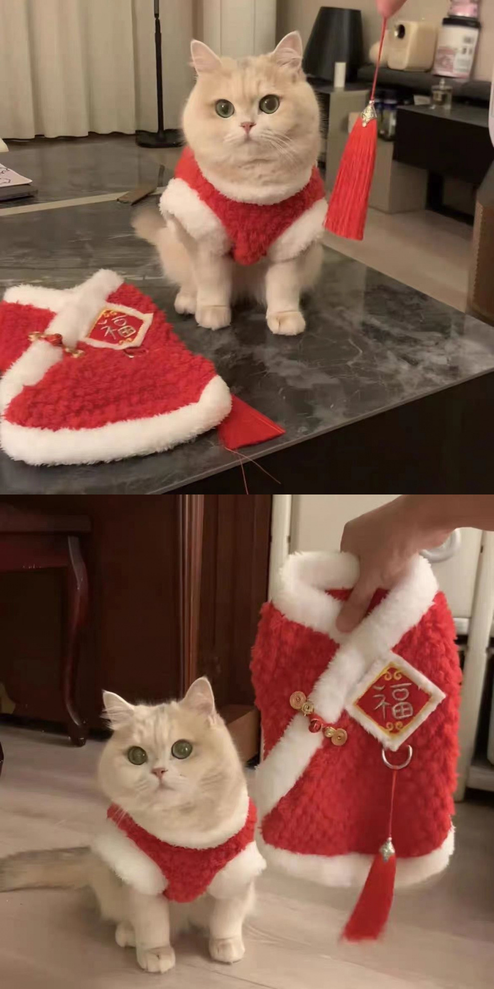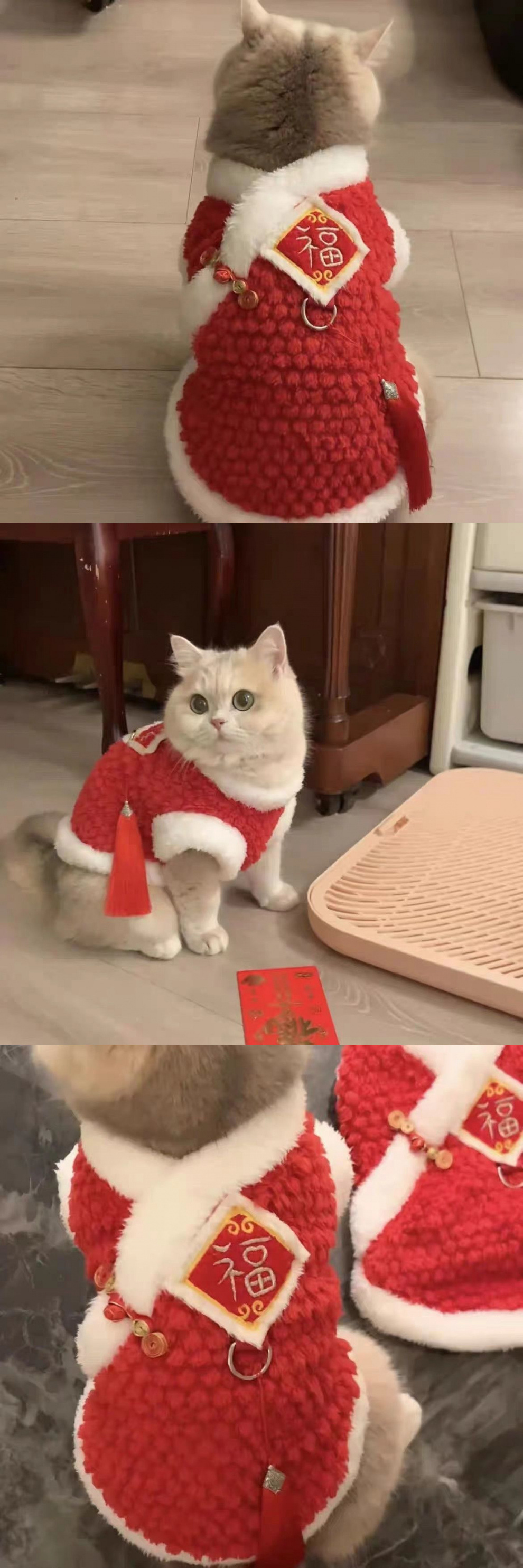고양이 새해 옷 가을 겨울 옷 귀여운 ins 블루 골드 그라데이션 Ragdoll 고양이 블루 고양이 빨간색 새해 축제 옷스토어 가기