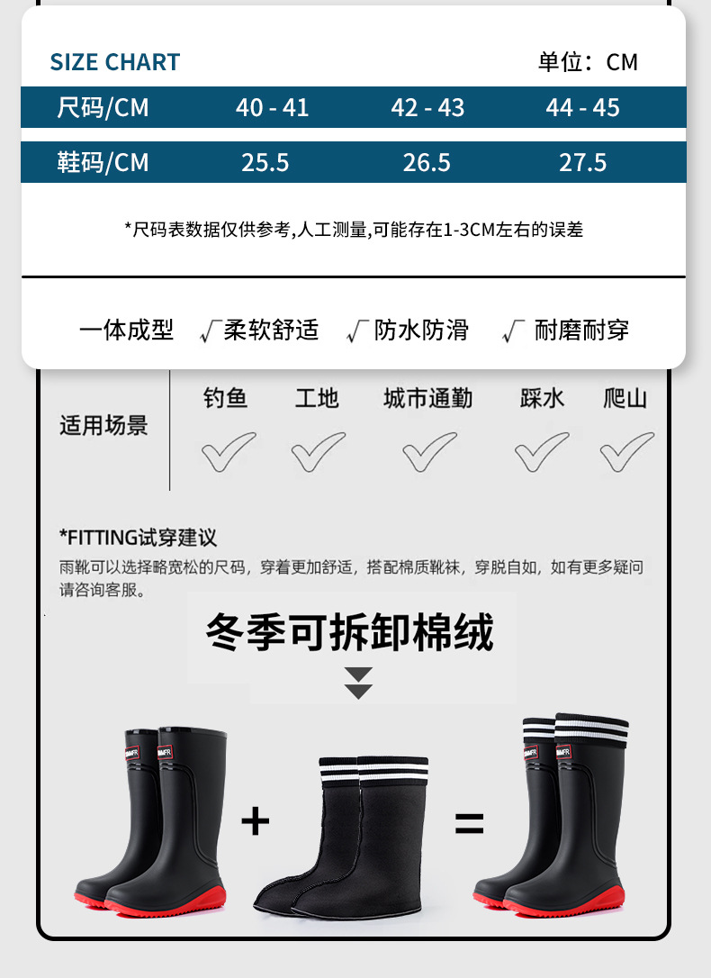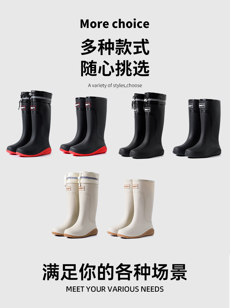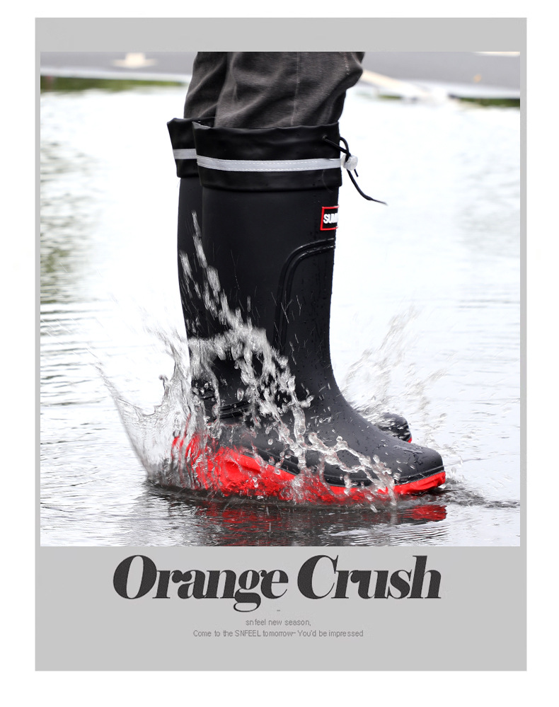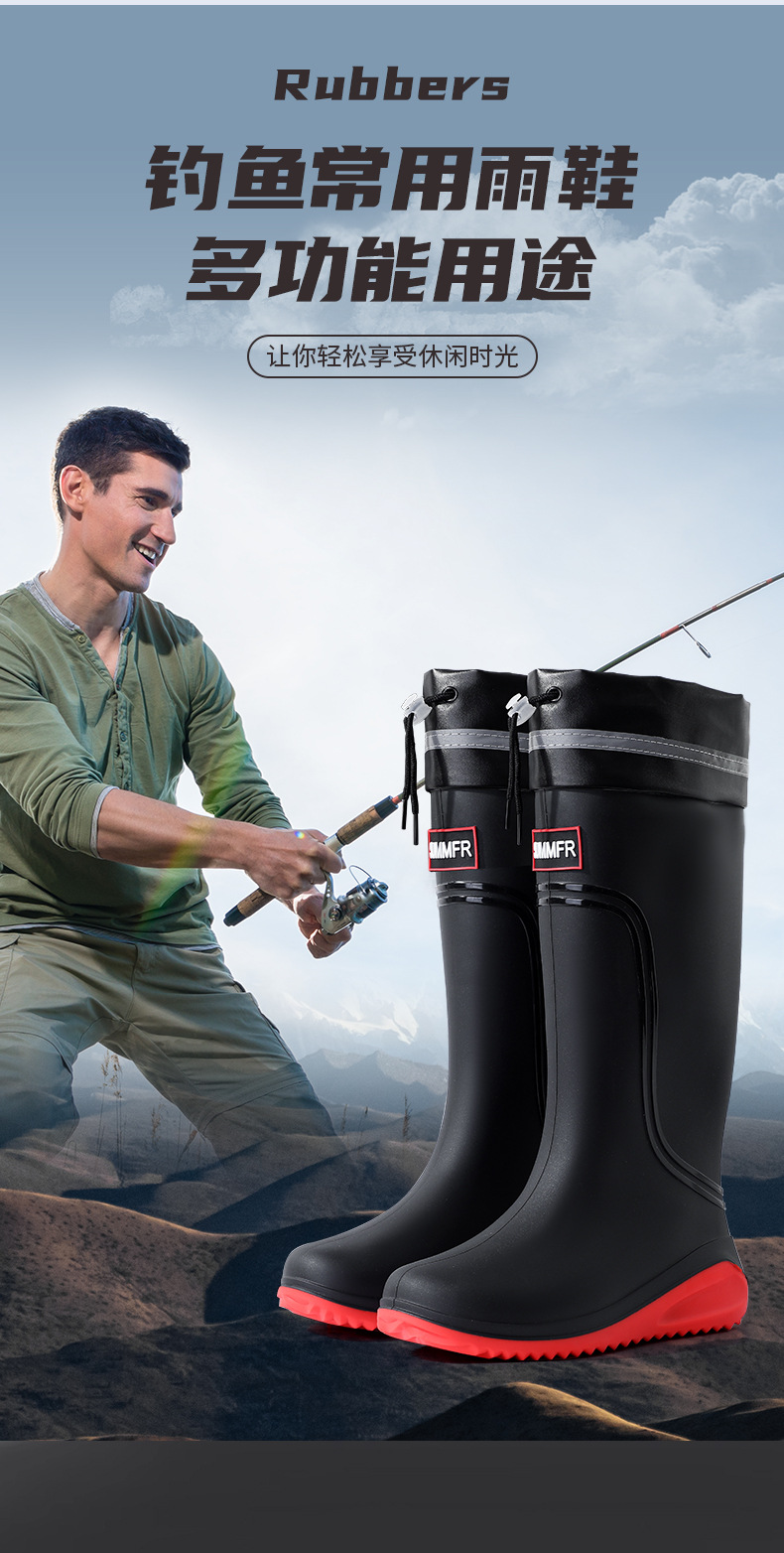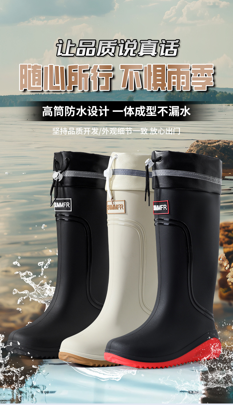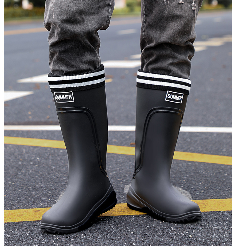 외부 착용 비 신발 남성 2025 새로운 도착 높은 금지 패션 성인 장화 방수 따뜻한 고무 신발 내마모성 수화스토어 가기