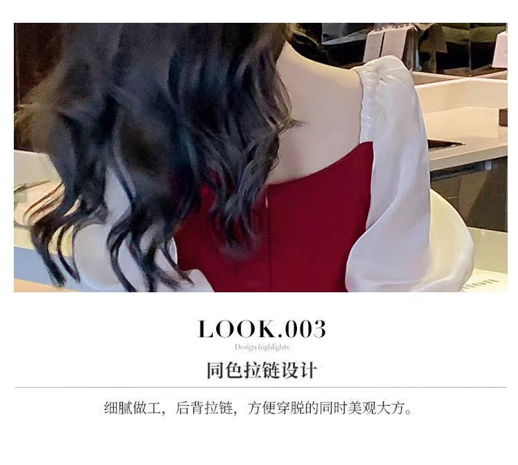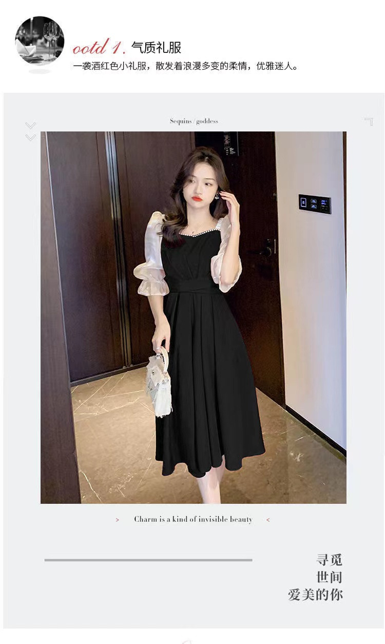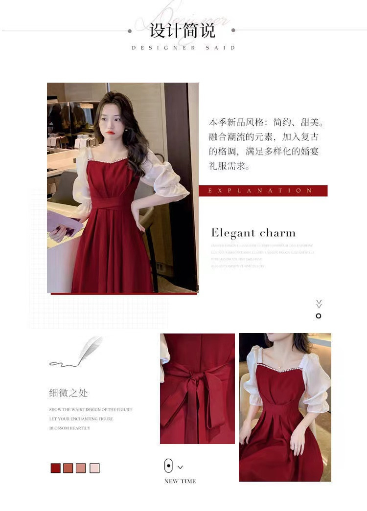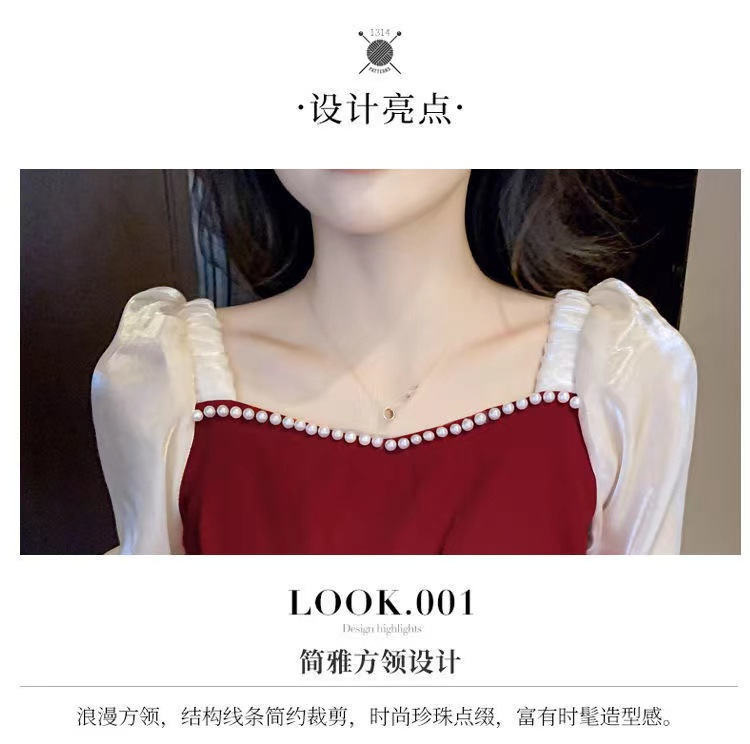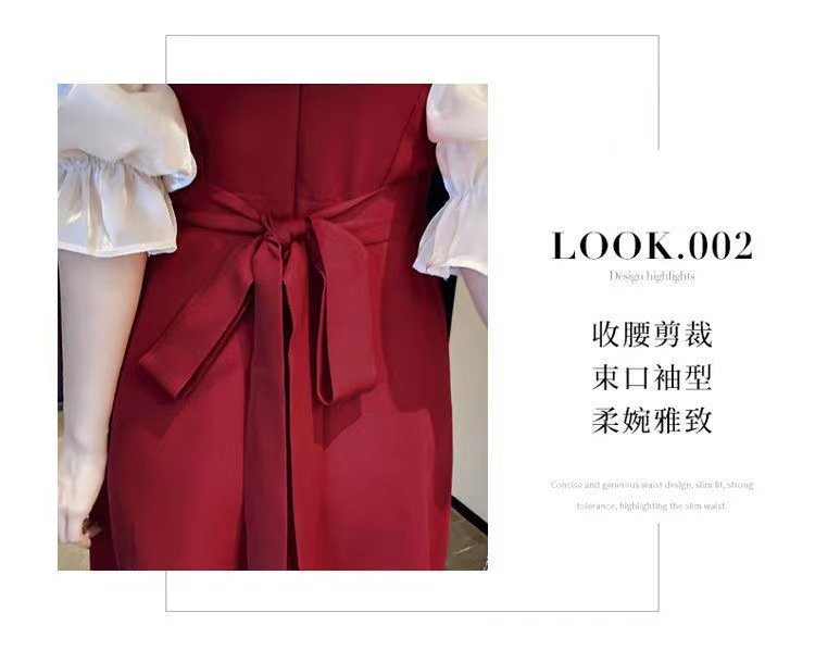 대외 무역 모델, 주문 전 물리적으로 확인하십시오. 여름용 여성용 5부 소매 달콤한 프렌치 레드 드레스스토어 가기