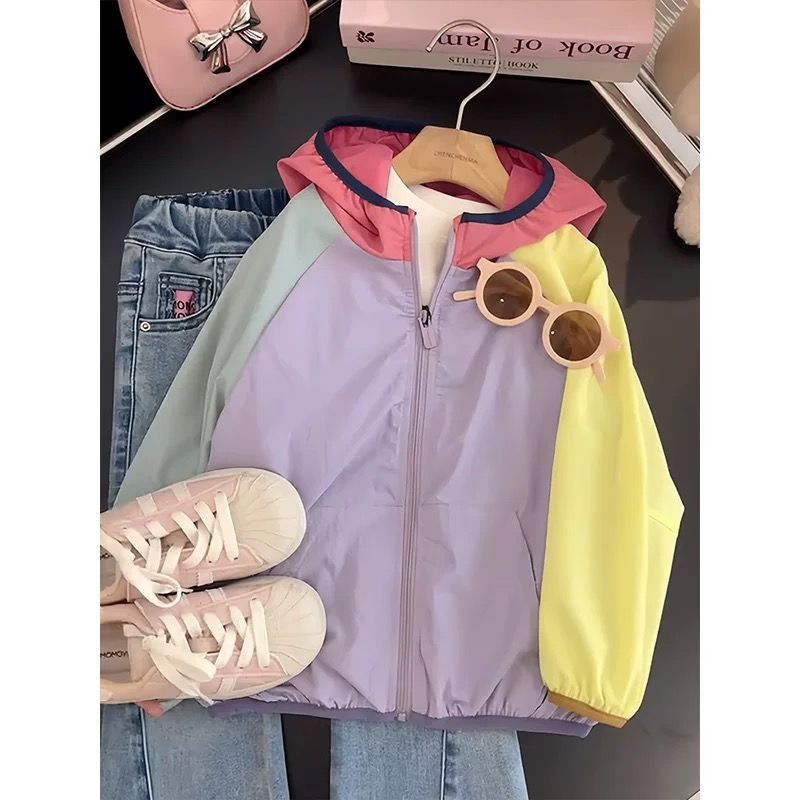 품질 원래 대형 재고 소녀 재킷 봄 어린이 컬러 블록 중 및 대형 어린이 캐주얼 한국 재킷스토어 가기
