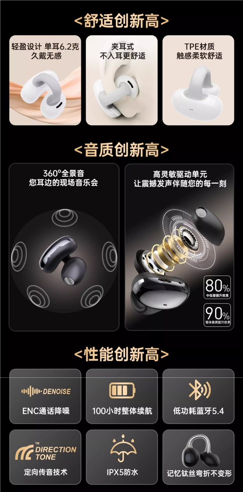이어 클립 블루투스 헤드셋 공기 골전도 무선 오픈형 귀걸이 이어폰 스포츠 러닝 2025 남성과 여성을위한 새로운 스타일스토어 가기