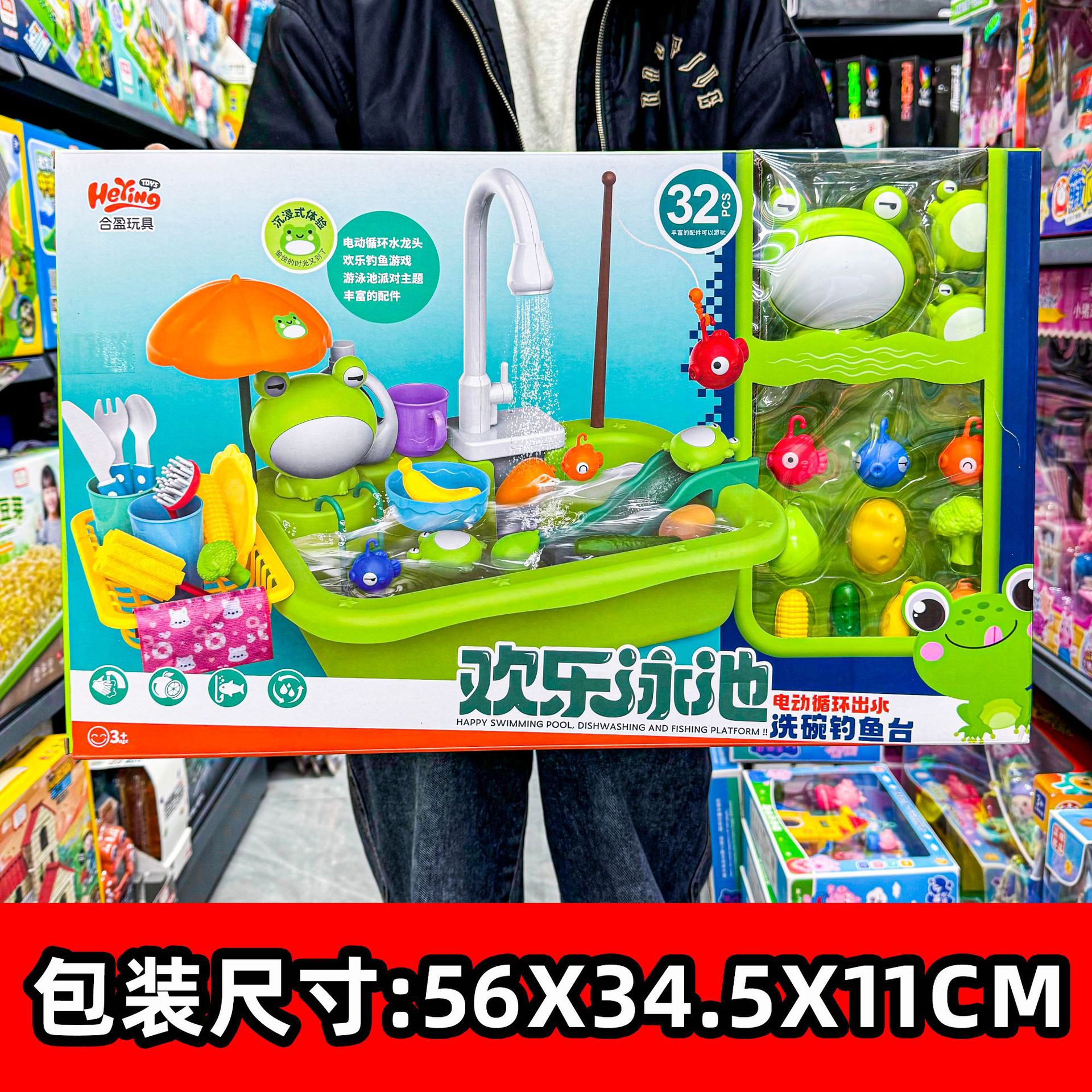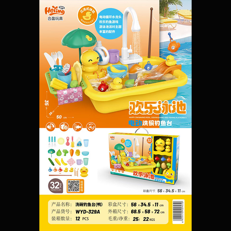 어린이 물놀이 장난감 노란색 오리 순환 물 아기 세면대 교육 놀이 집 식기 세척대 낚시 장난감 크로스
