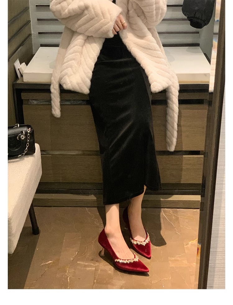 2025 Grape Mom 같은 스타일의 반짝이는 라인스톤 프렌치 스타일 작은 뾰족한 발가락 얇은 굽 얕은 웨딩 슈즈 여성용 하이힐스토어 가기