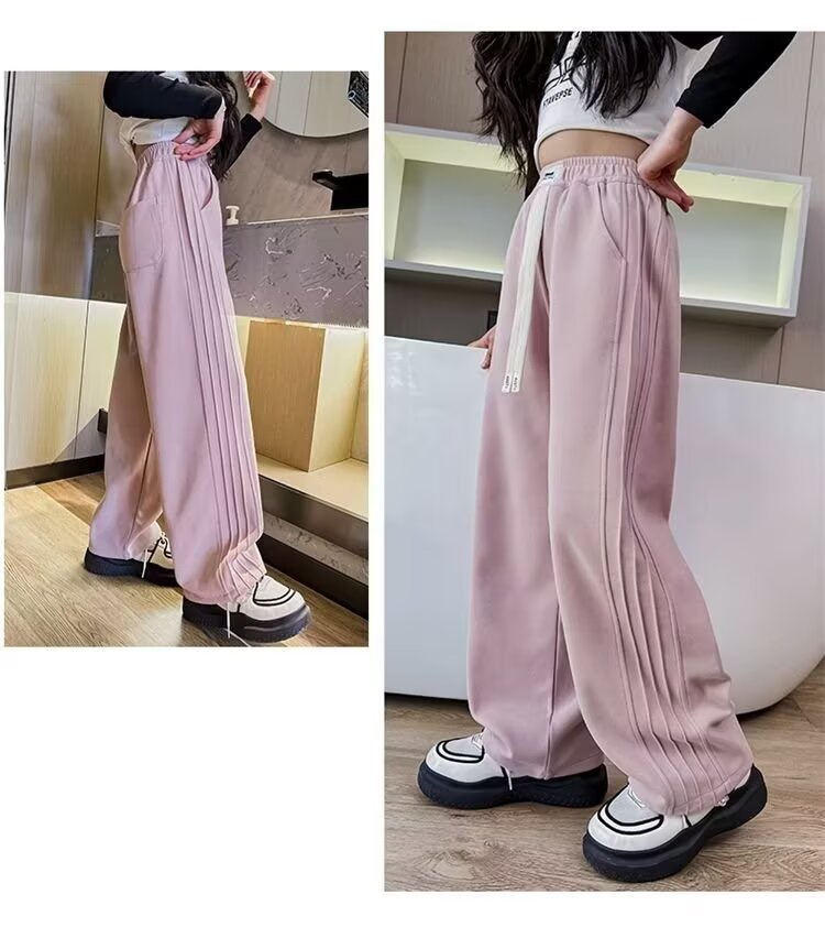 한국판 2025 봄 여름 와이드 팬츠, 새로운 스타일, 여아 및 어린이를 위한 패셔너블한 캐주얼 스트레이트 팬츠, 아동용 루즈 팬츠스토어 가기