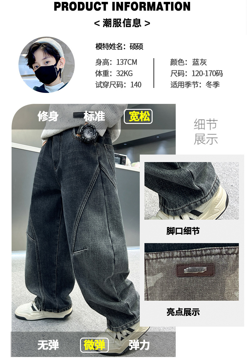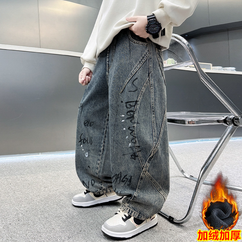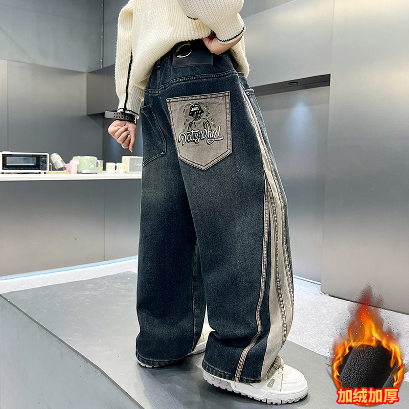 남아용 기모 바지 가을 겨울 2025 신상 큰아이 겨울용 루즈핏 남아용 일체형 기모 아동용 일자 청바지