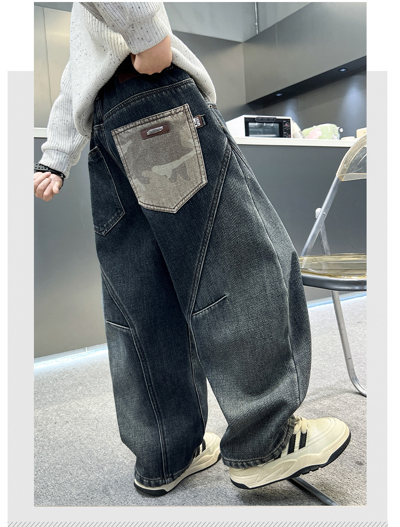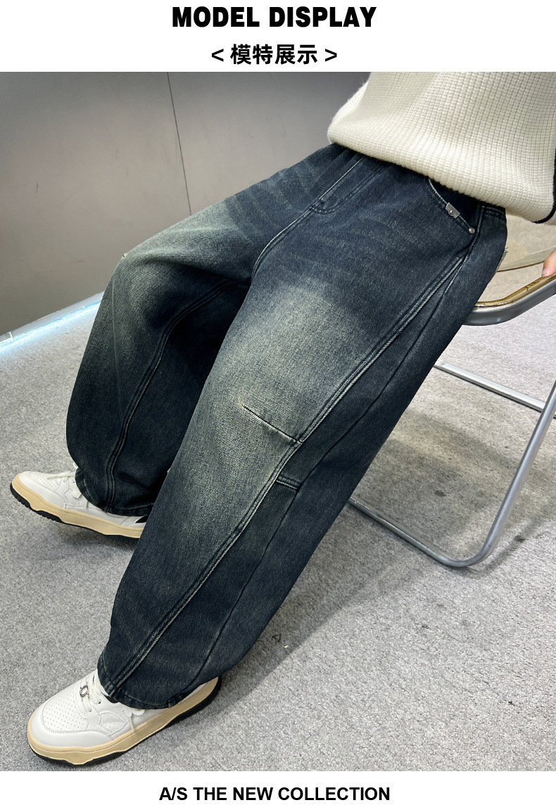 남아용 기모 바지 가을 겨울 2025 신상 큰아이 겨울용 루즈핏 남아용 일체형 기모 아동용 일자 청바지스토어 가기