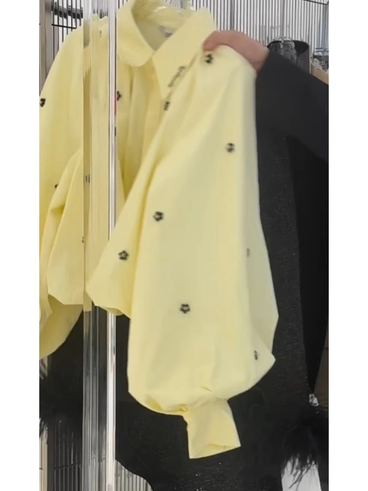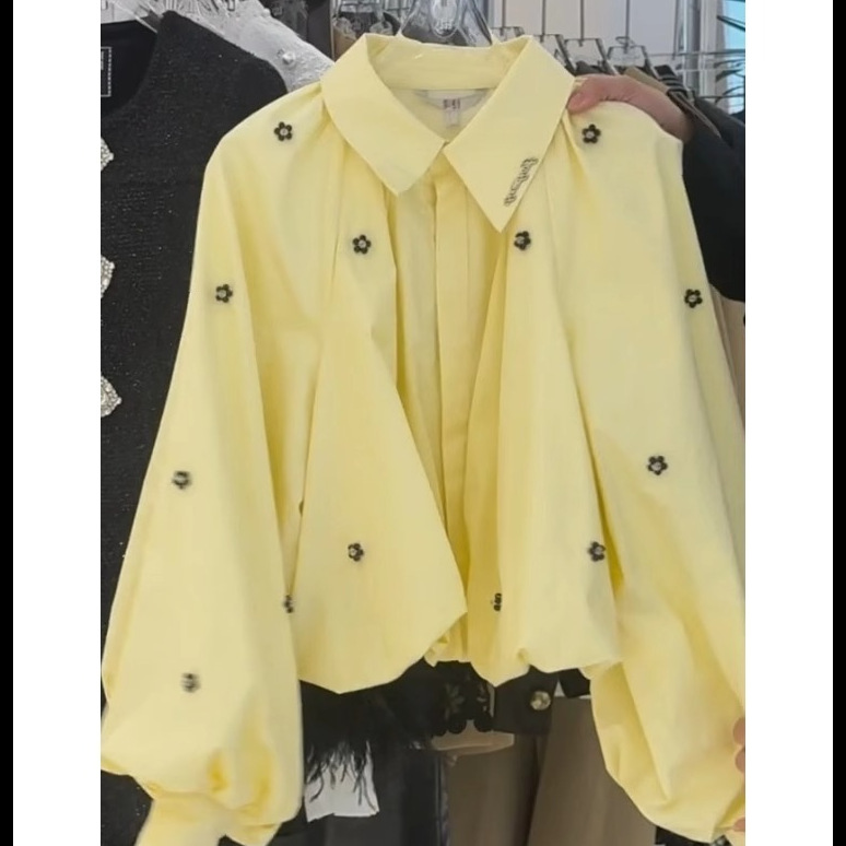 우아한 노란색 셔츠 여성 탑 봄 2025 새로운 한국식 긴팔 캐주얼 스택 하이 엔드 라이트 럭셔리 셔츠스토어 가기
