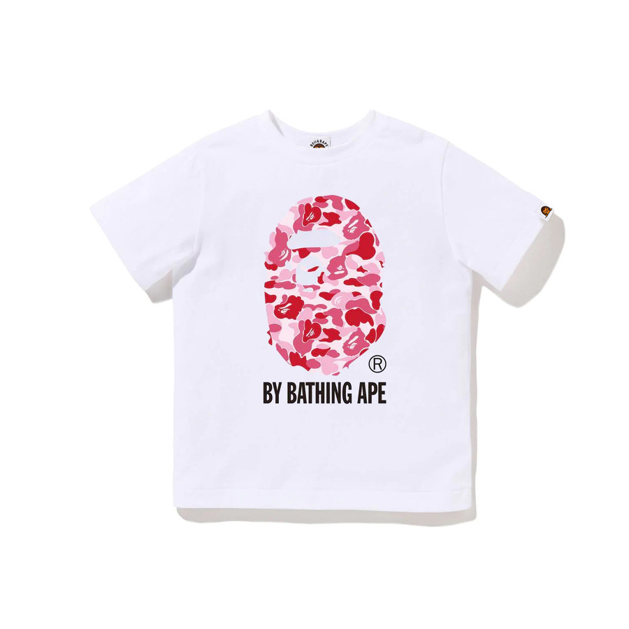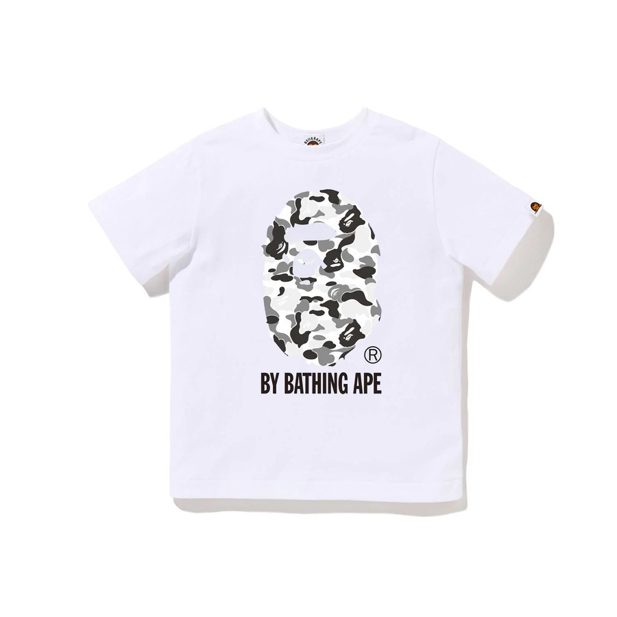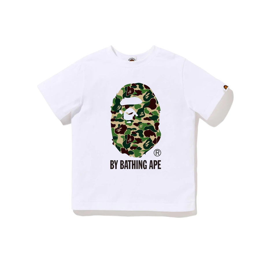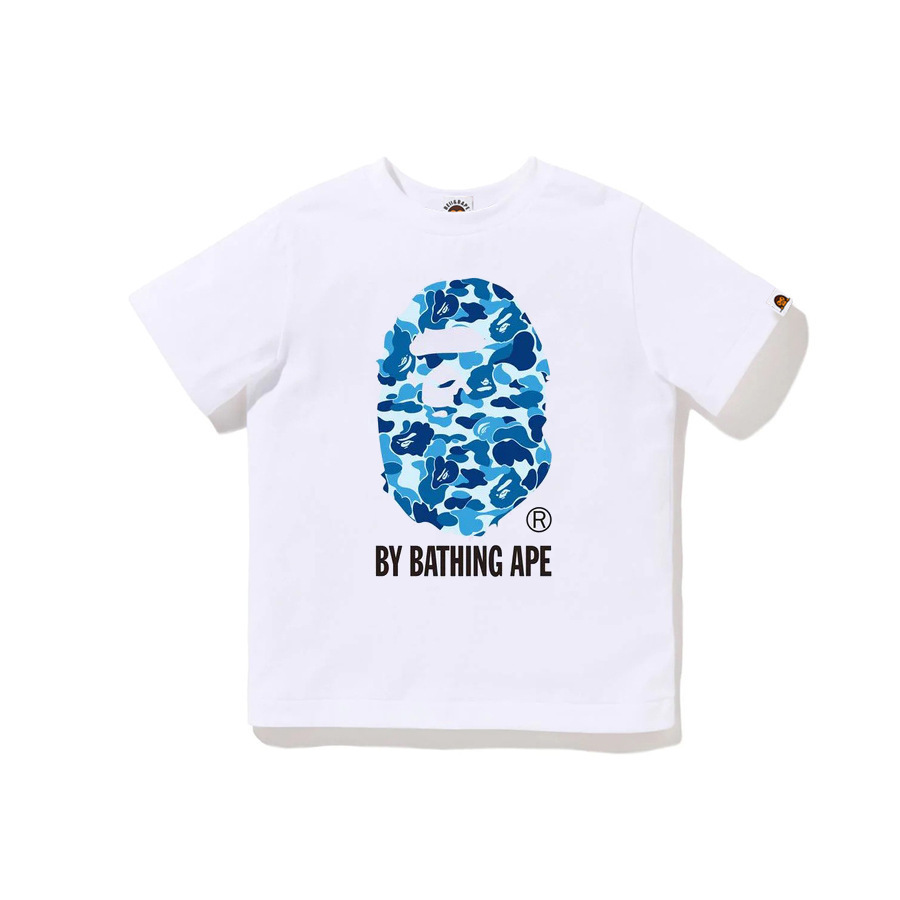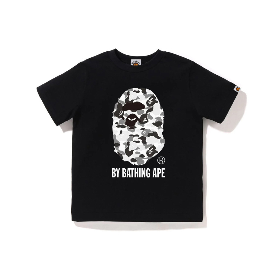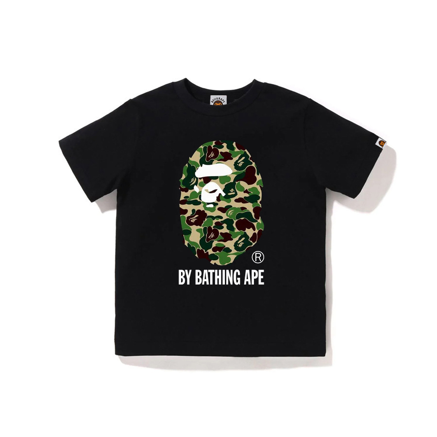 BEII&BAPE 트렌디 브랜드 아동복 봄 여름 원숭이 머리 위장 문자 프린트 반팔 230G 더블 원사 코튼 부모-자식 티셔츠