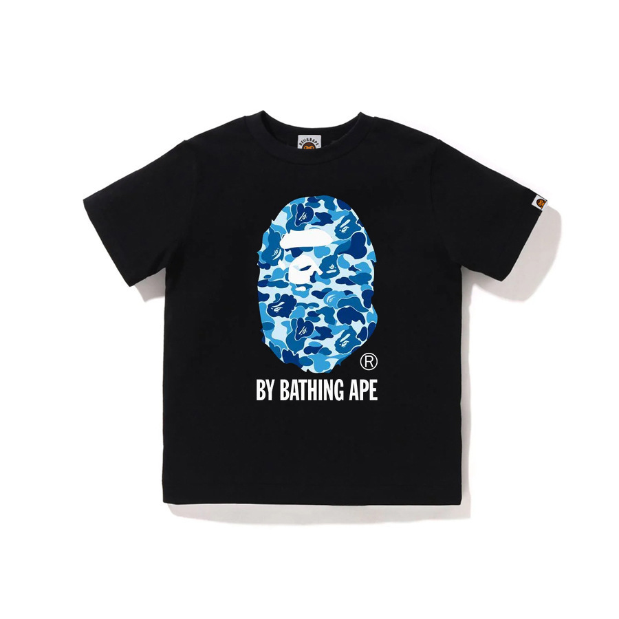 BEII&BAPE 트렌디 브랜드 아동복 봄 여름 원숭이 머리 위장 문자 프린트 반팔 230G 더블 원사 코튼 부모-자식 티셔츠스토어 가기