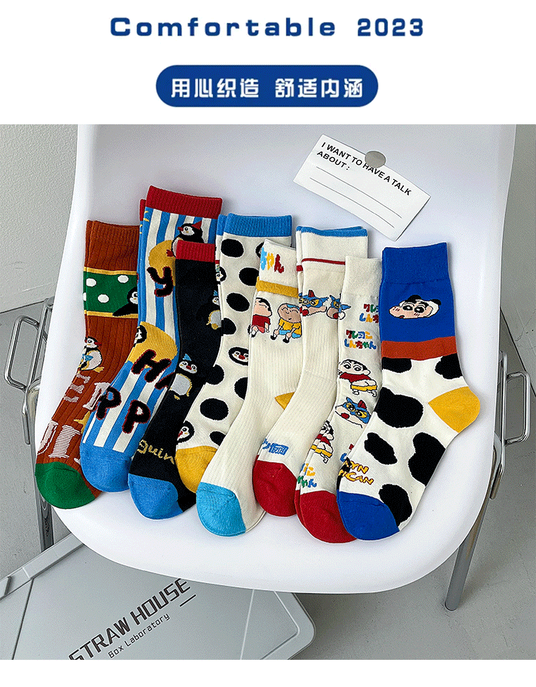 샤오신 양말 여성 사계절 중장 양말 일본식 만화 애니메이션 더미 양말 칼리지 스타일 스트리트 패션 아우터 스타킹스토어 가기