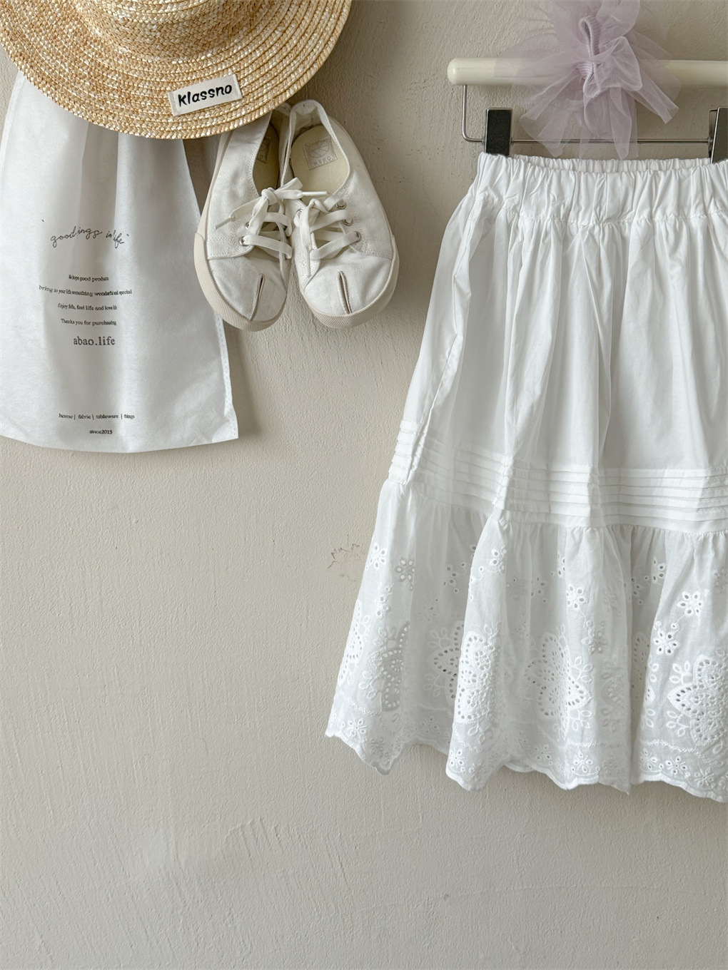 어린이 치마 라이 포옹 2025 여름 새 한국 아동복 한국문학 스타일 주름 레이스 소녀 허리 치마스토어 가기