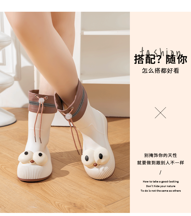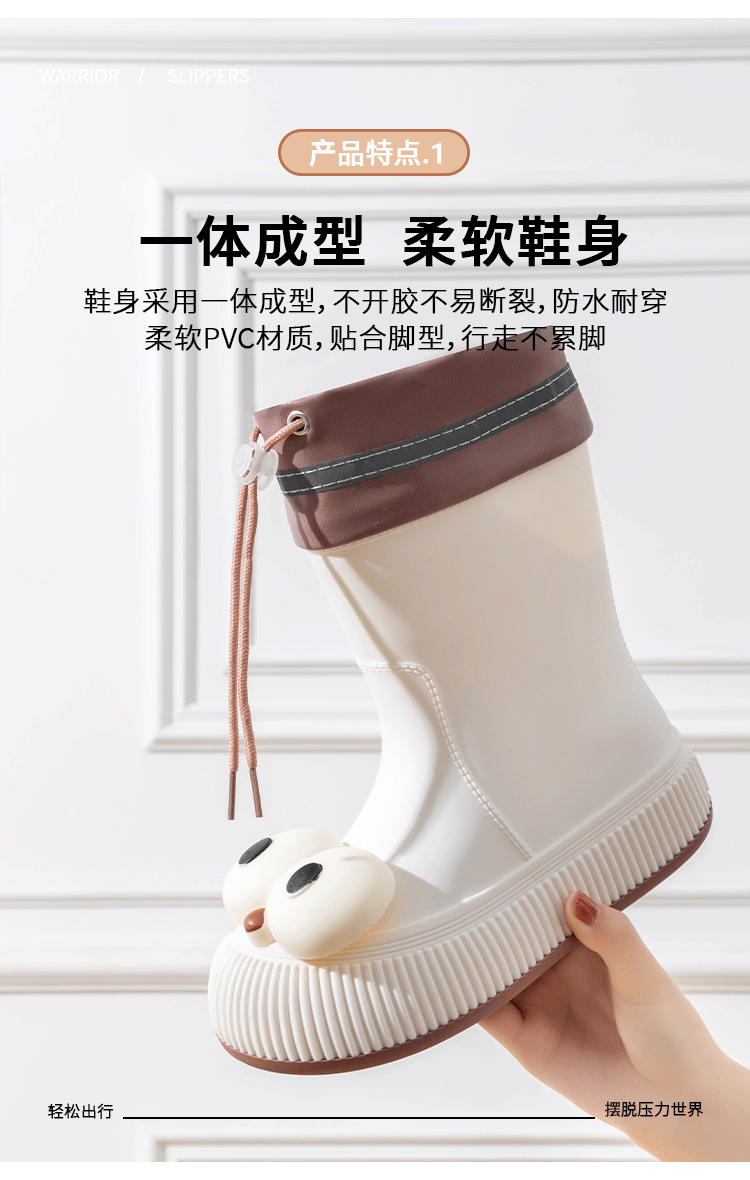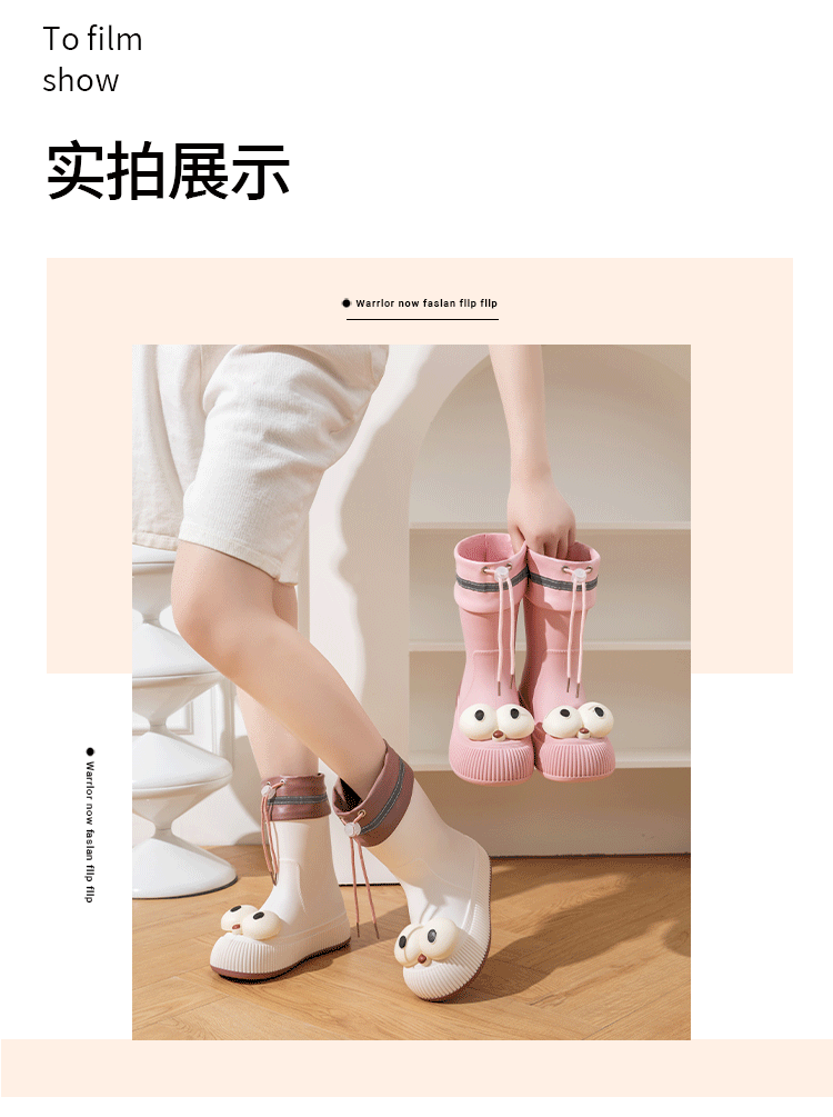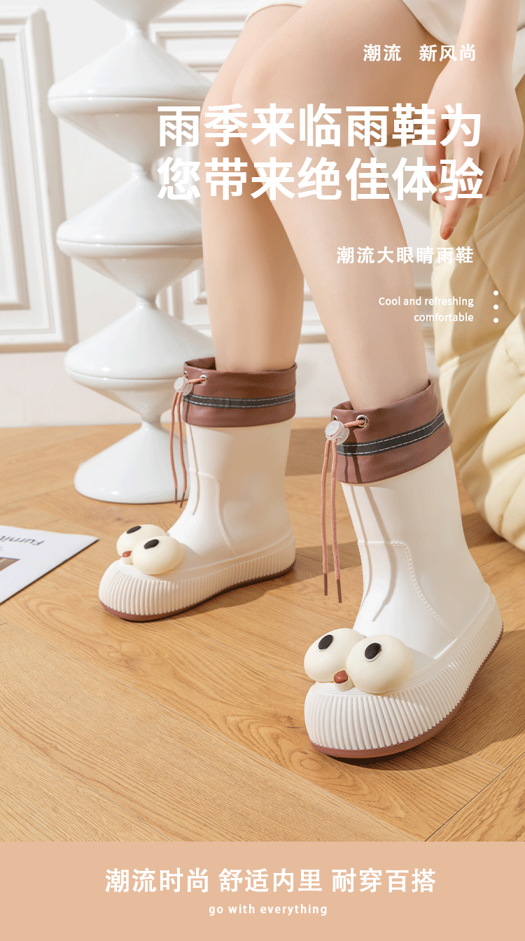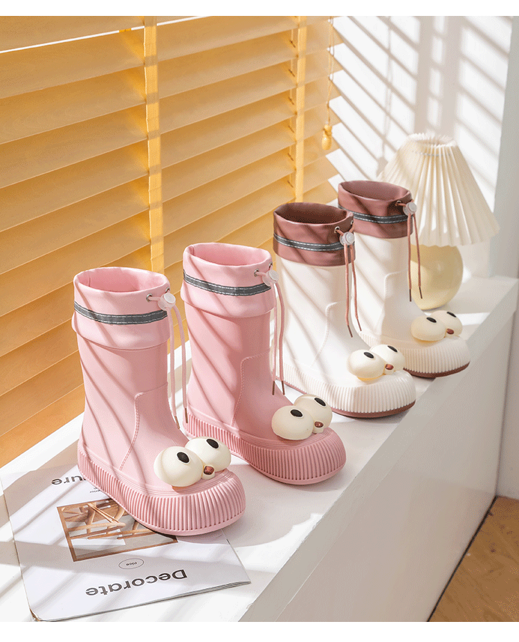 만화 어린이의 새로운 장화, 세련된 겉옷, 귀여운 중간 튜브 미끄럼 방지 부모-자식 장화, 내마모성 및 방수 야외 고무 신발
