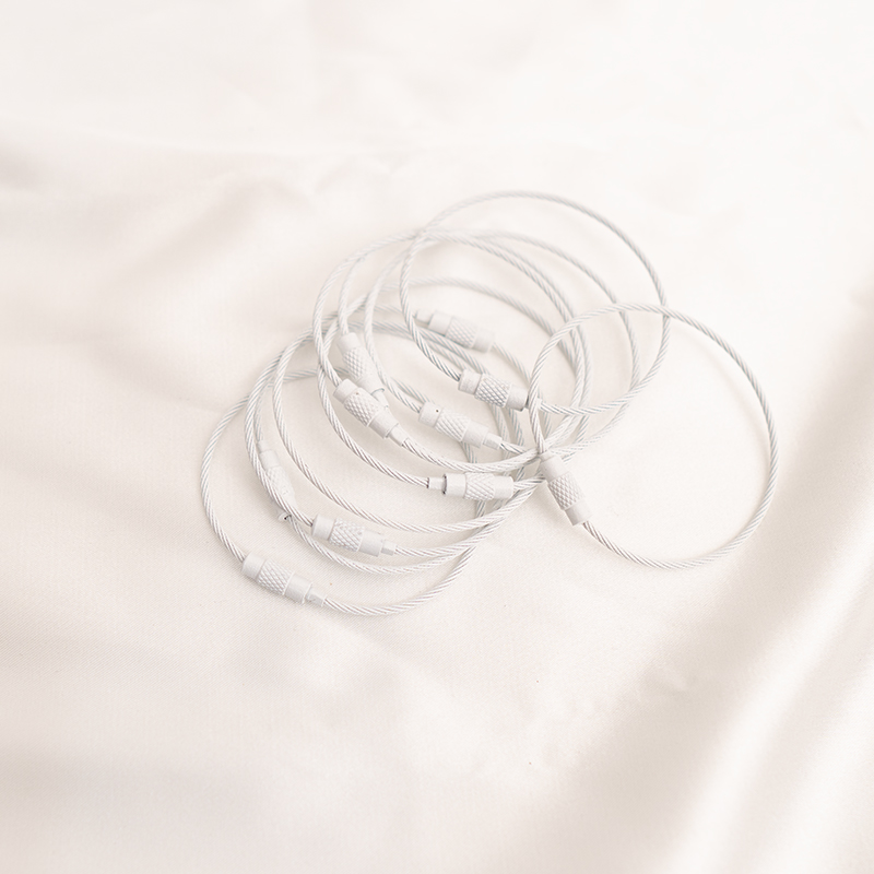 다채로운 와이어 로프 키체인, 페인트 링, 와이어 로프 링, 고무 코팅 스테인레스 스틸 와이어 로프 버클 키체인스토어 가기