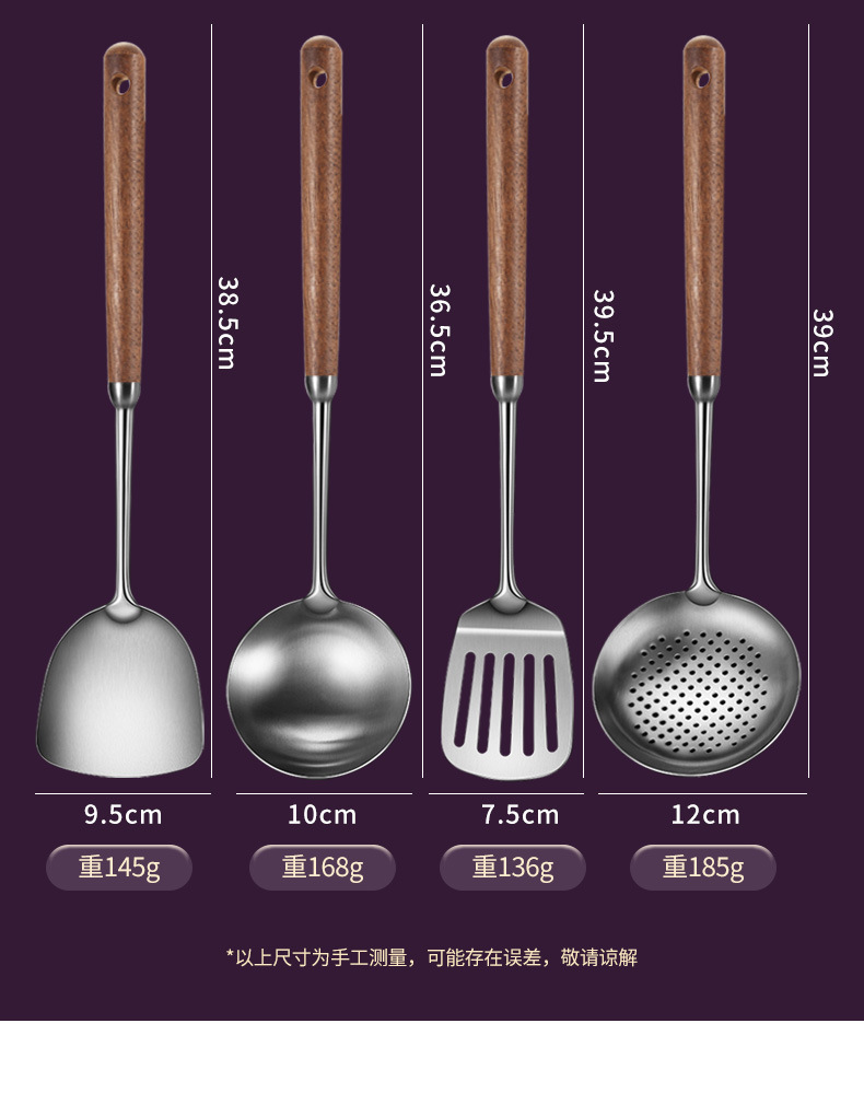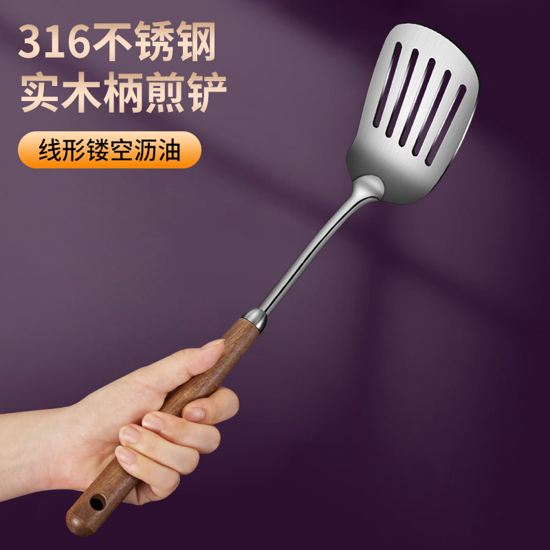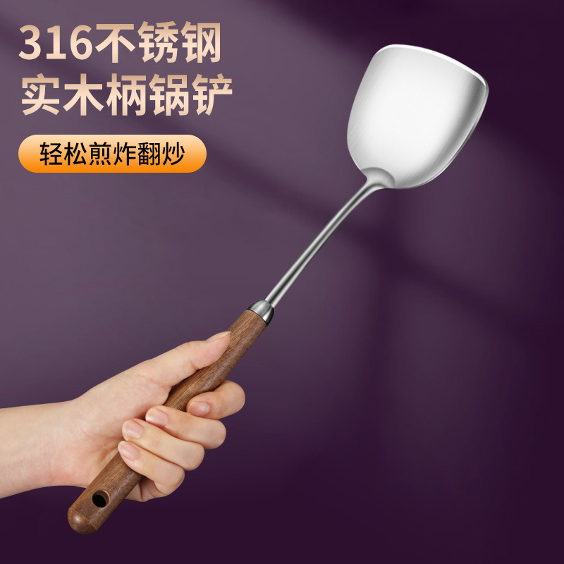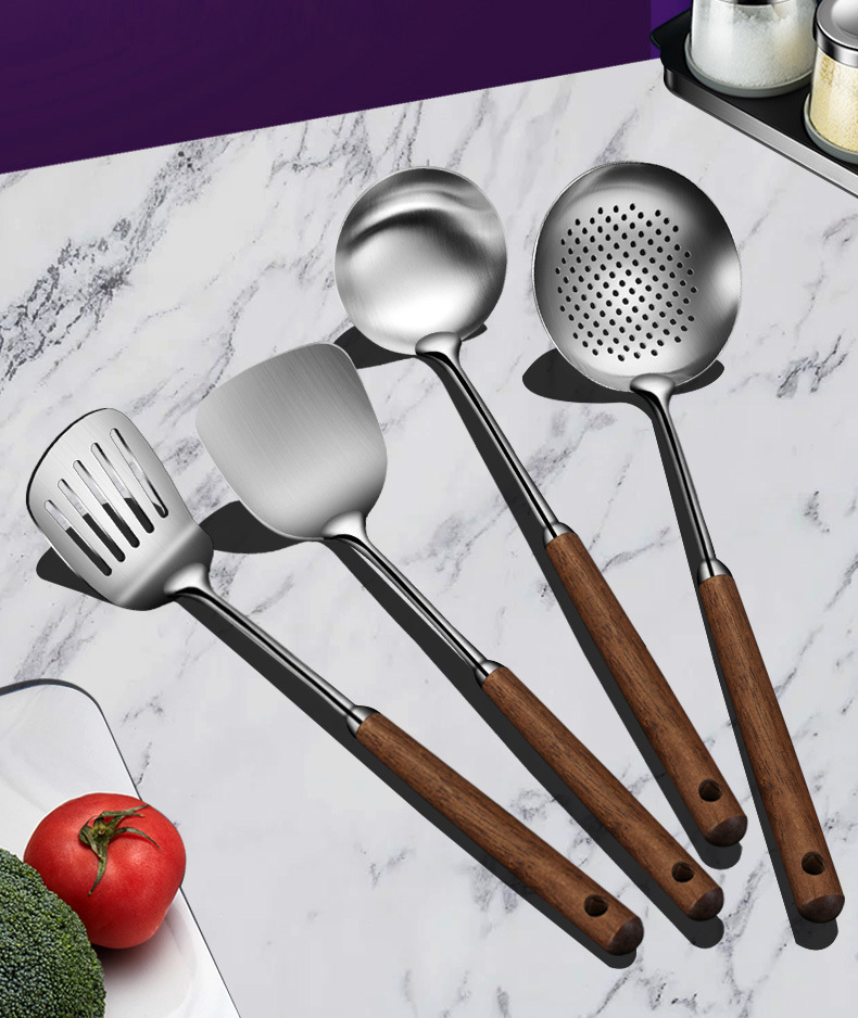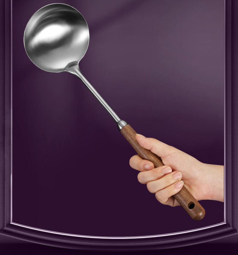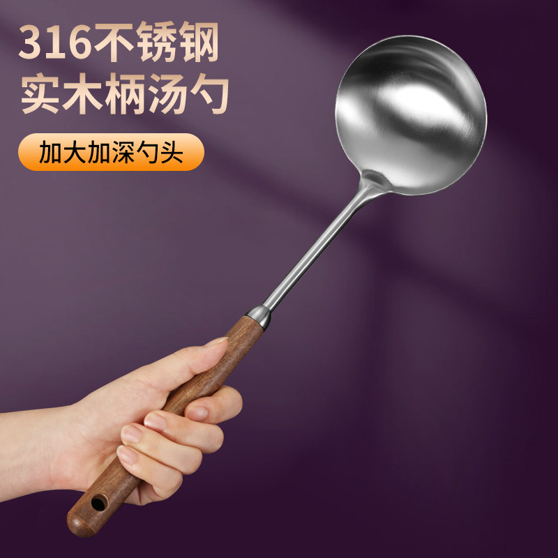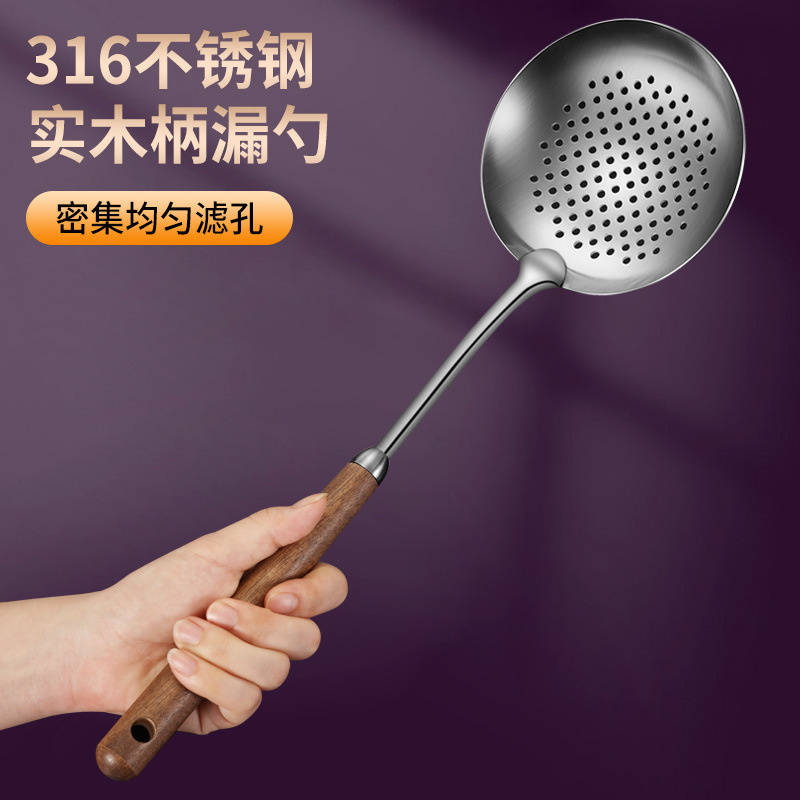 호두 손잡이 주걱 316 스테인레스 스틸 볶음 주걱 가정용 숟가락 수프 숟가락 소쿠리 주방 주방 세트