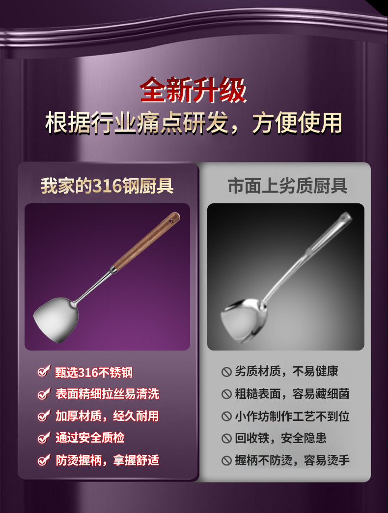 호두 손잡이 주걱 316 스테인레스 스틸 볶음 주걱 가정용 숟가락 수프 숟가락 소쿠리 주방 주방 세트스토어 가기