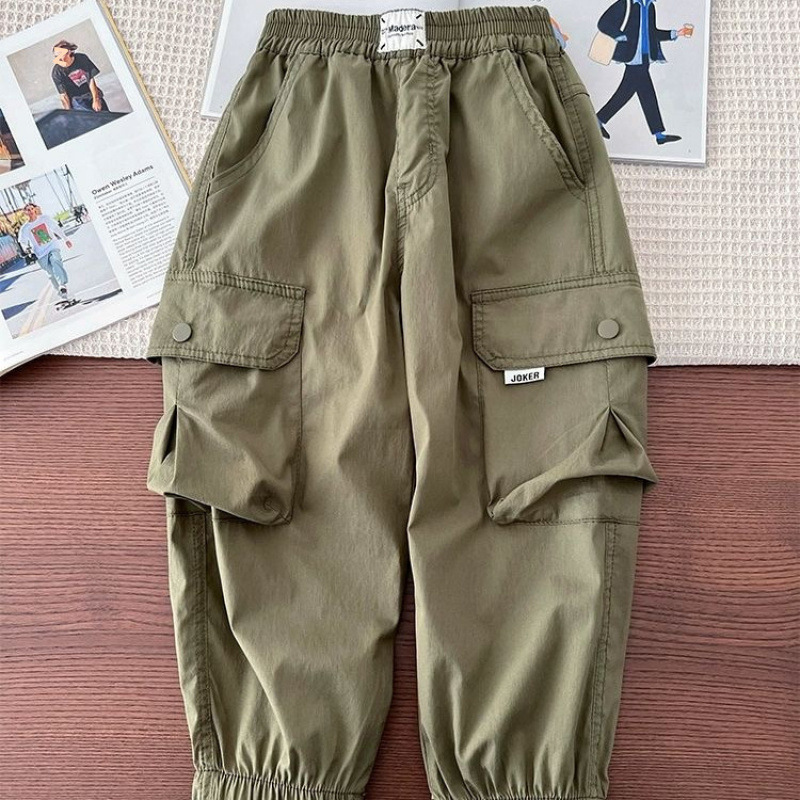 소년 봄 가을 얇은 바지 2025 새로운 대형 어린이 스포츠 모기 방지 바지 소년 한국 캐주얼 작업복 바지
