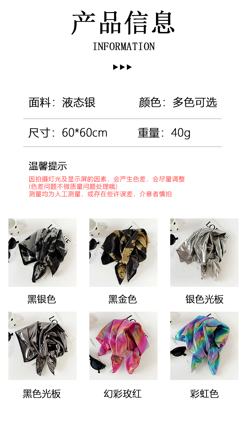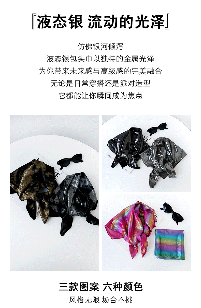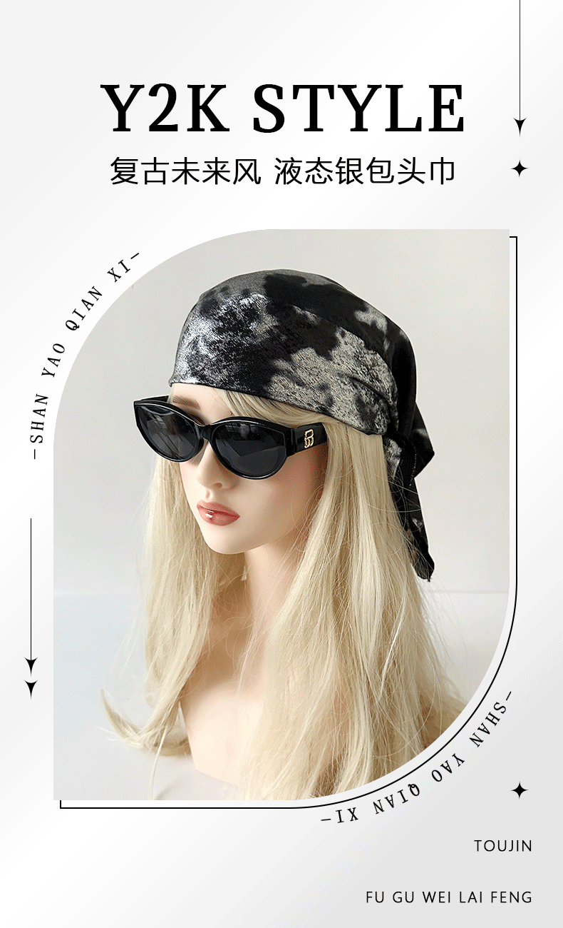 리퀴드 실버 스파이스 소녀 스카프 여성의 머리 포장 헤드 스카프 Y2K 스퀘어 스카프 포장 가슴 남녀를위한 올 매치 힙합 유행 스카프 맞춤형스토어 가기