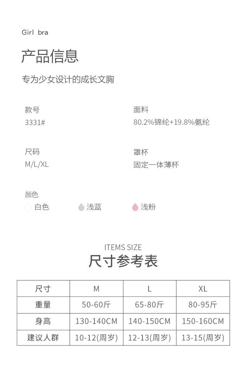 여아용 조끼형 속옷, 발달기 9-14세 아동 속옷, 초등학생, 중학생, 여아용, 2단계, 소녀용