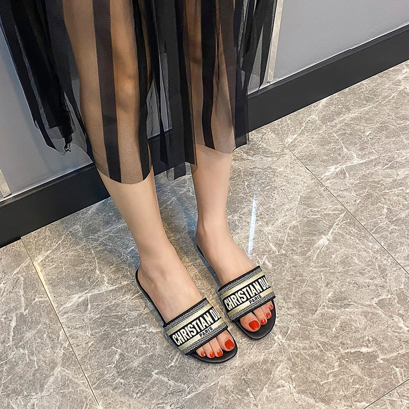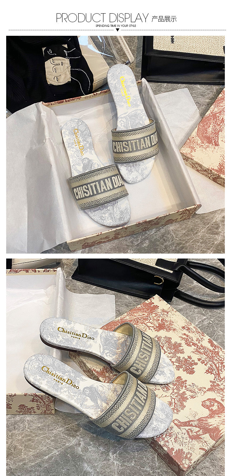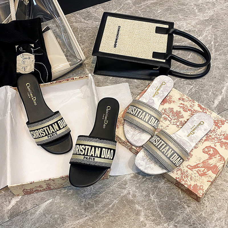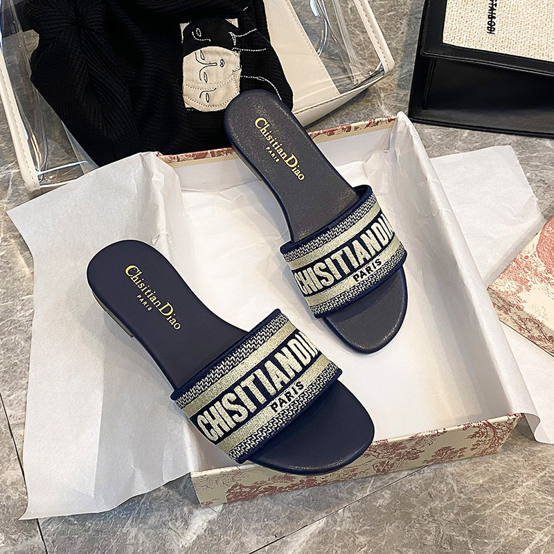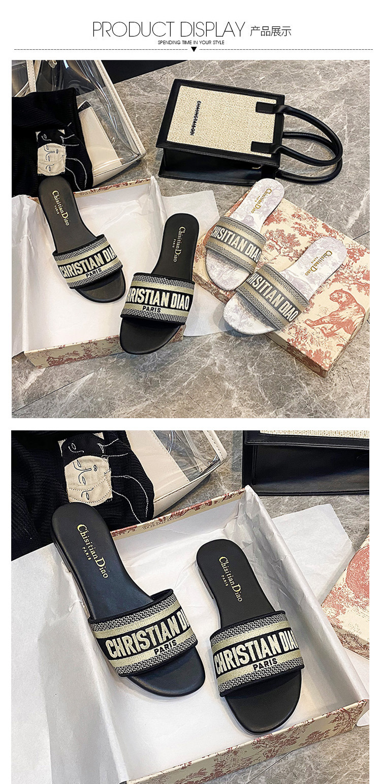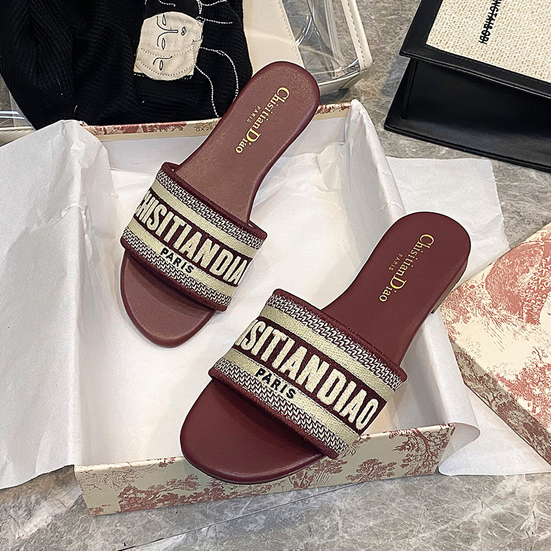 CHISITIAN DIAO 슬리퍼 여성 의상 2025 새로운 플랫 정품 가죽 슬라이드, D 글자 수 놓은 해변스토어 가기
