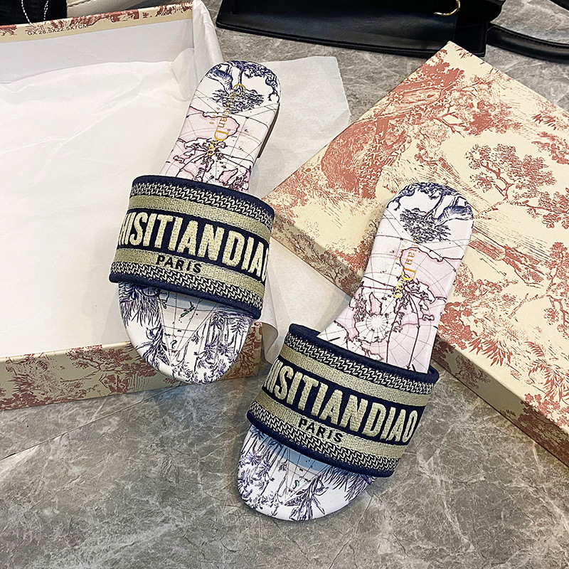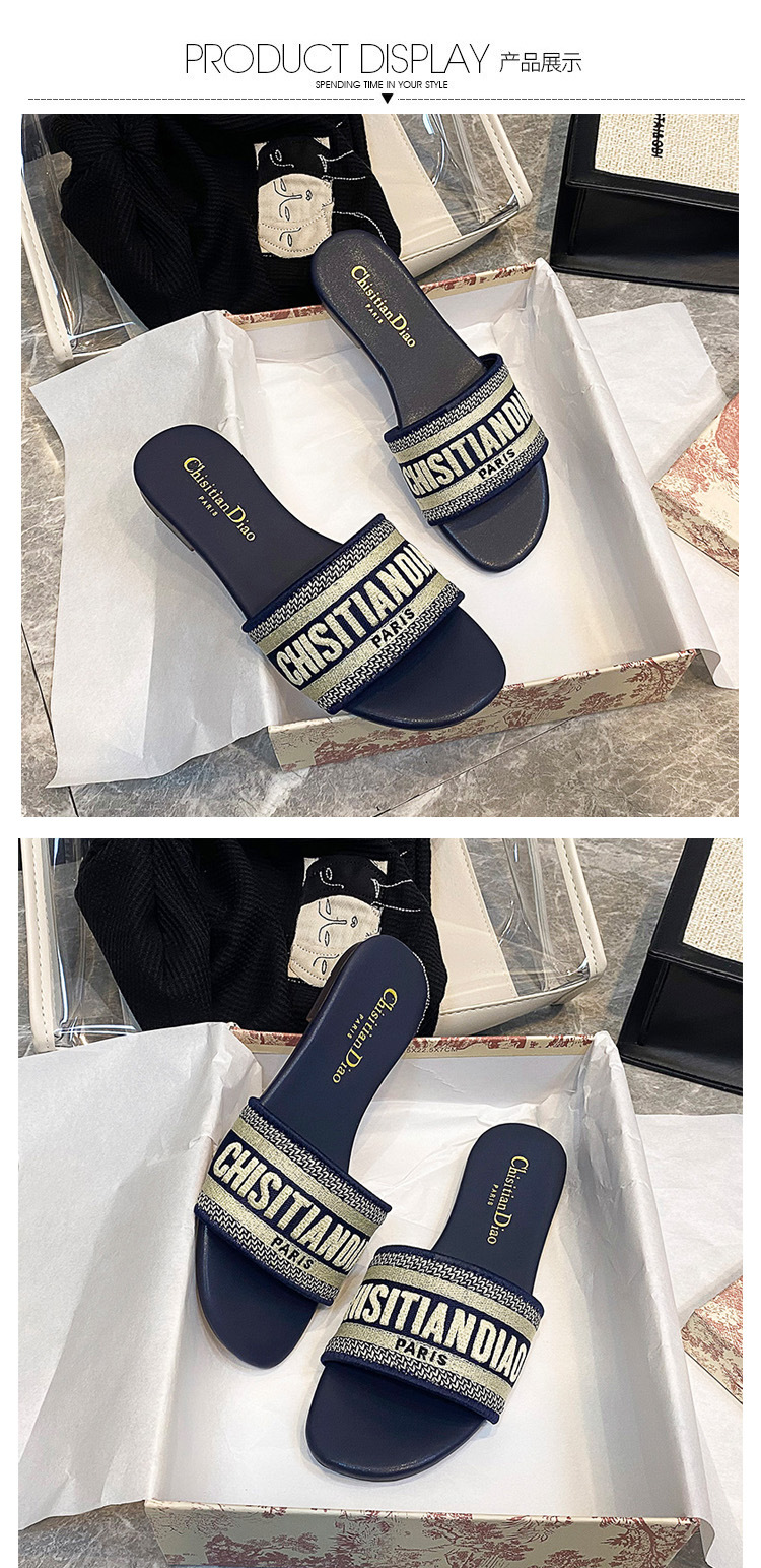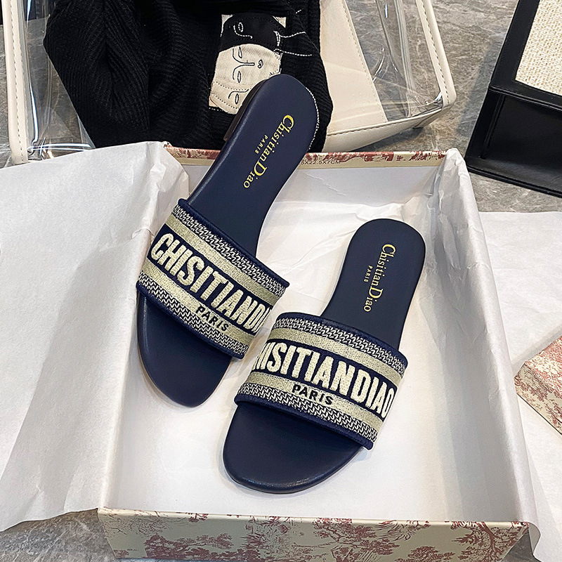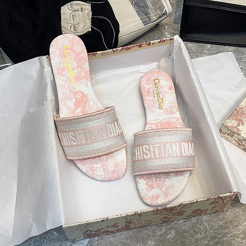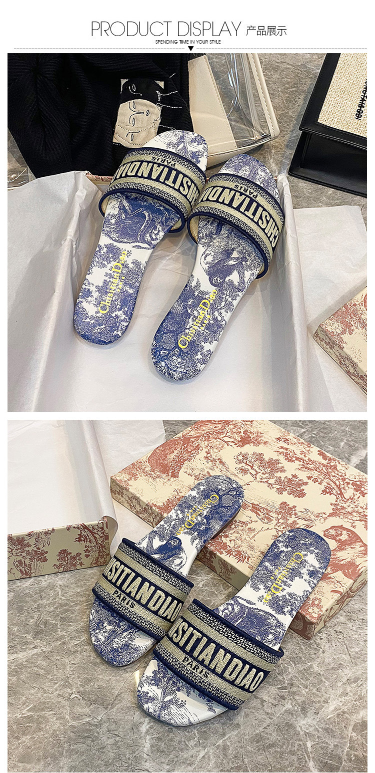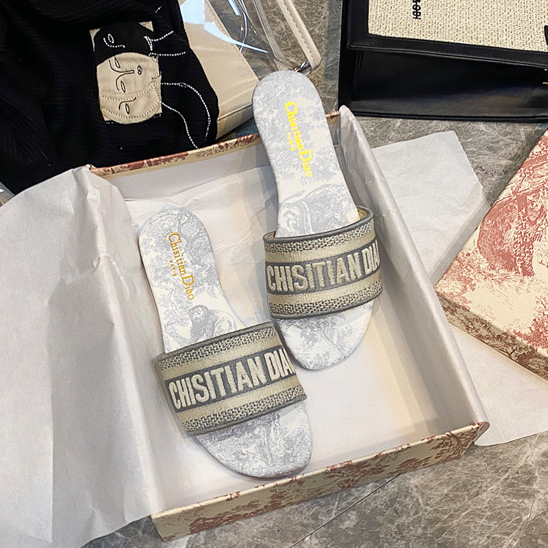 CHISITIAN DIAO 슬리퍼 여성 의상 2025 새로운 플랫 정품 가죽 슬라이드, D 글자 수 놓은 해변스토어 가기