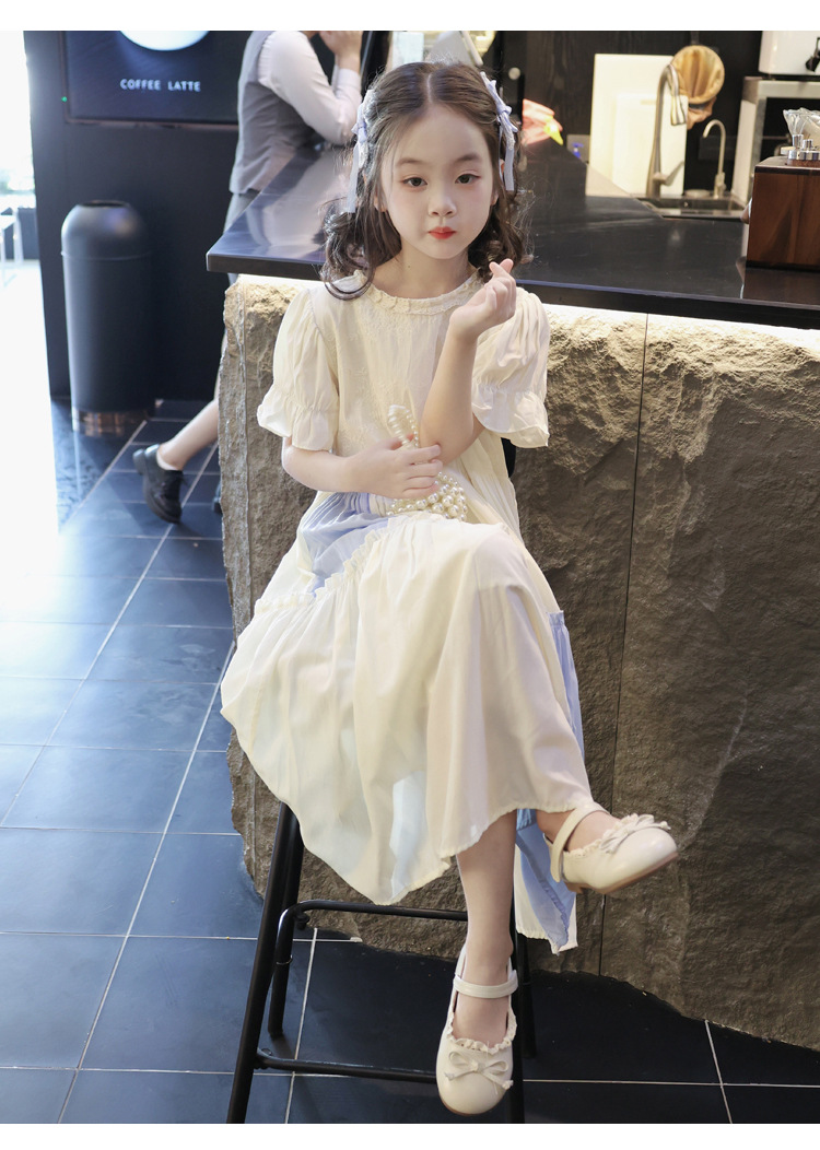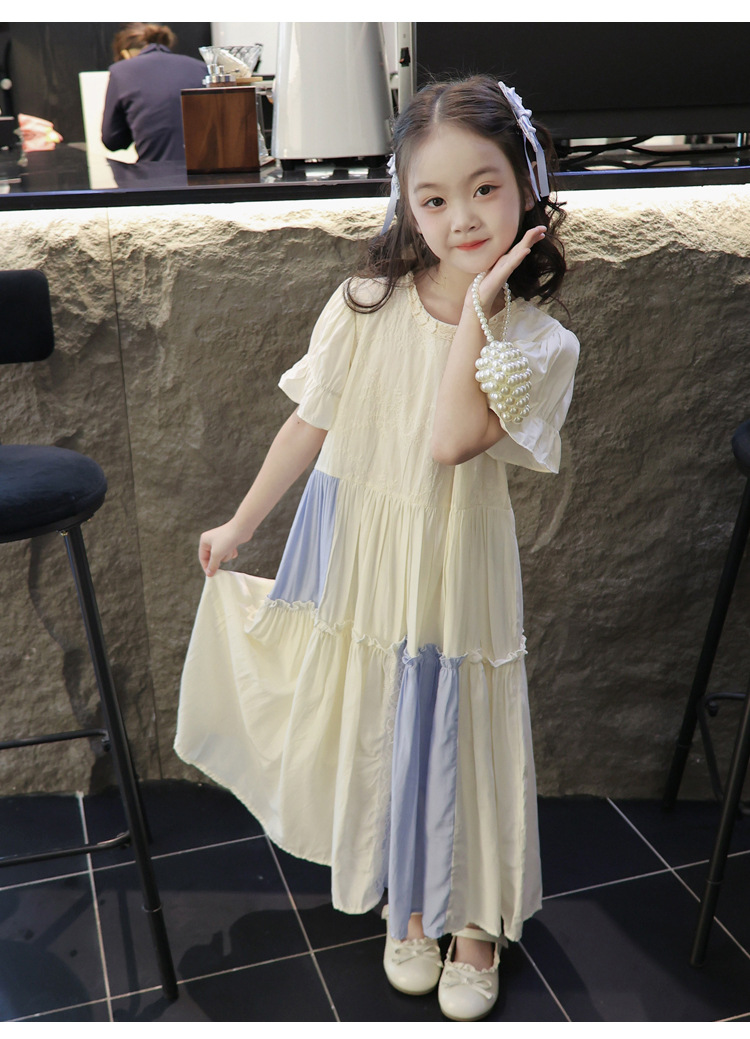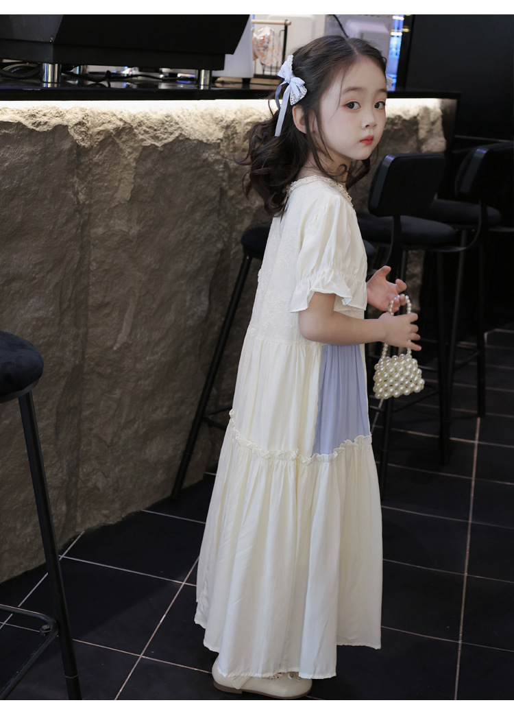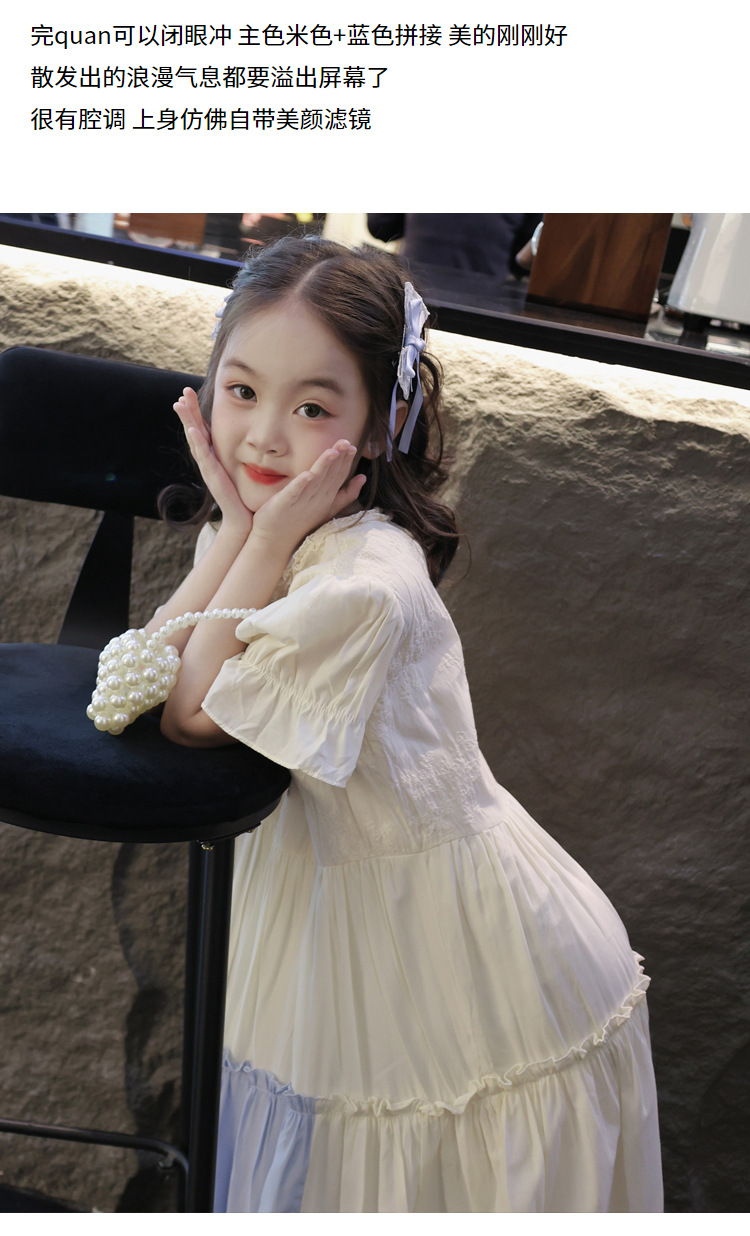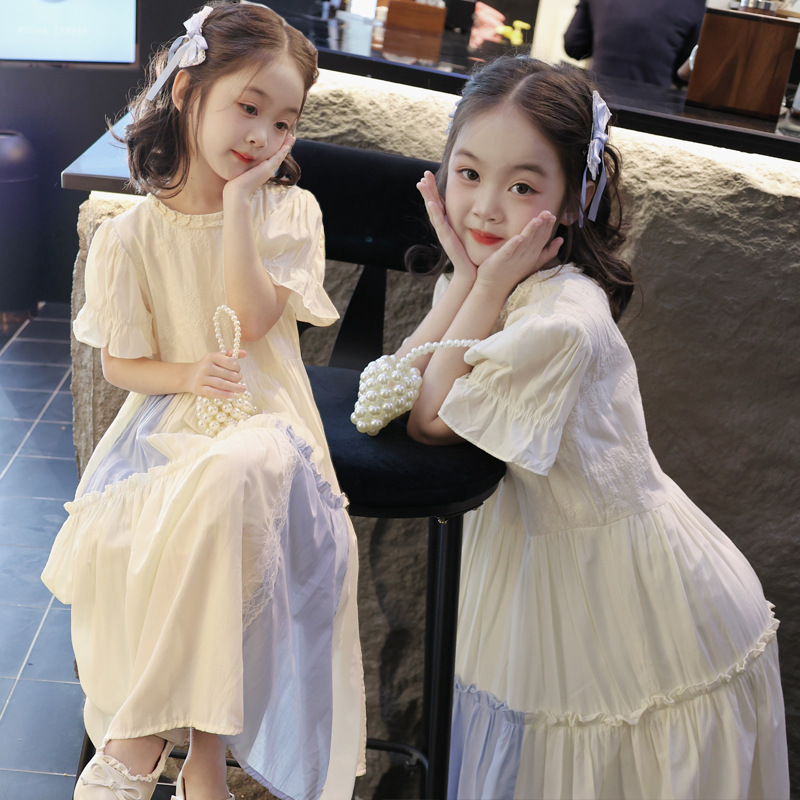 소녀의 컬러 블록 레이스 원피스 여름 해변 원피스 2025 서양식 프랑스 로리타 롱 원피스 귀여운 공주 원피스스토어 가기