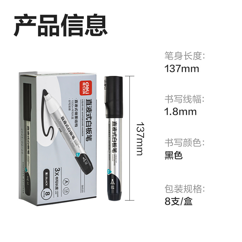 SK520 델리 스트레이트 액체 1.8mm 화이트보드 펜 수성 지울 수 있는 화이트보드 펜 디스플레이 펜 오피스 트레이닝 펜 지우기 쉬움스토어 가기