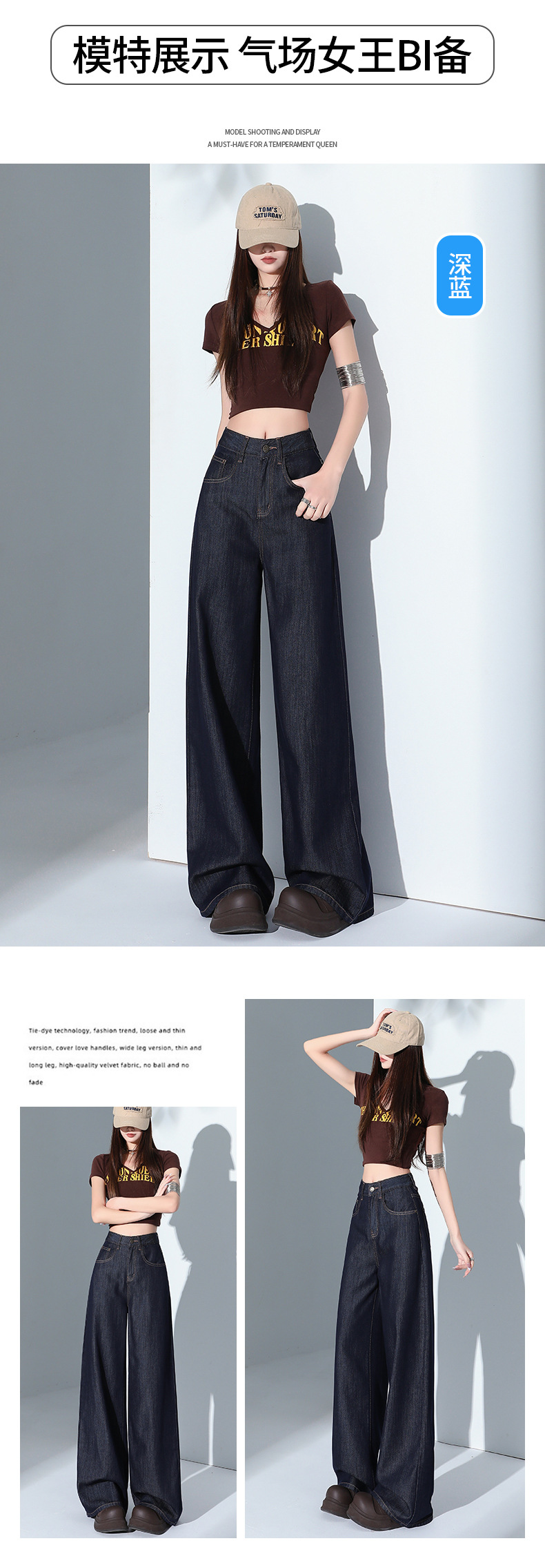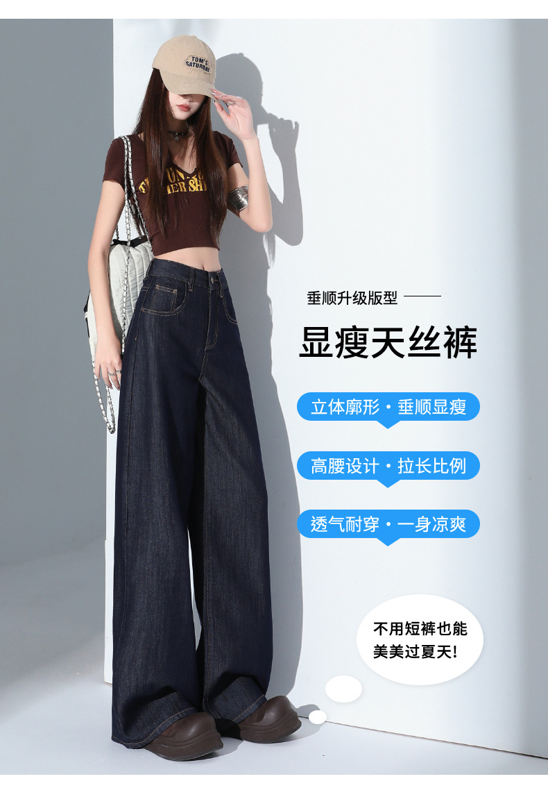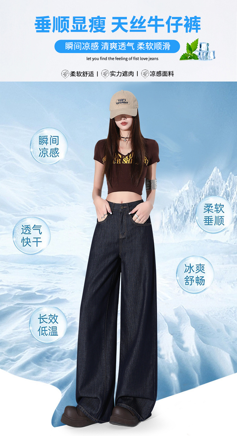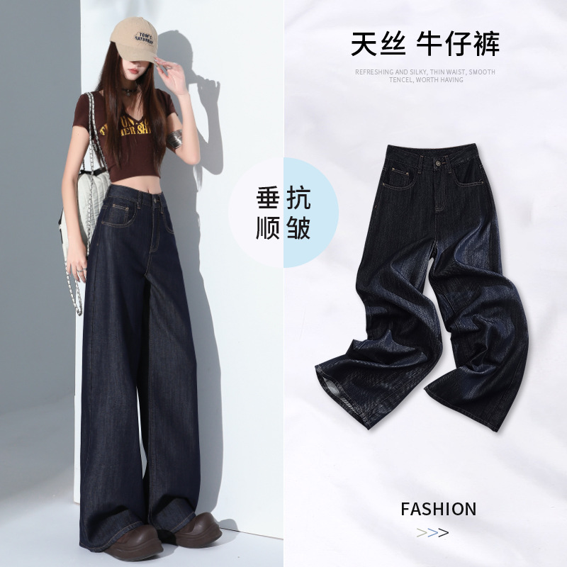 여성용 다크 스카이 텐셀 청바지 2025 여름 하이 웨이스트 루즈 슬리밍 드레이프 디자인 아이스 실크 와이드 레그 바닥 길이 바지스토어 가기