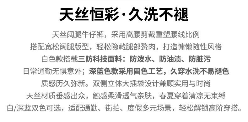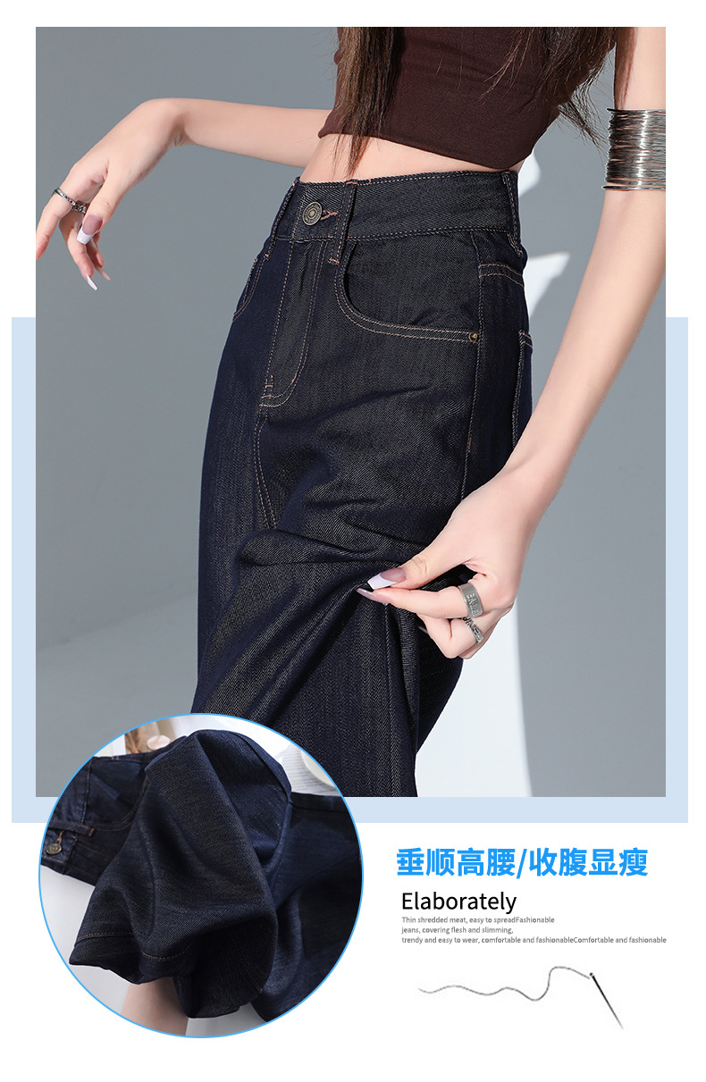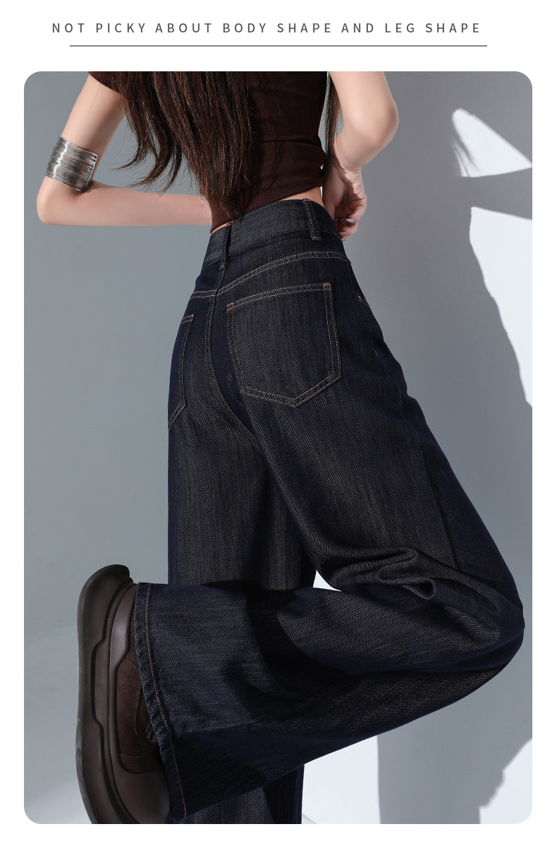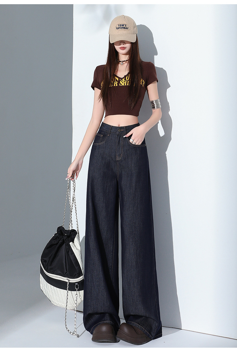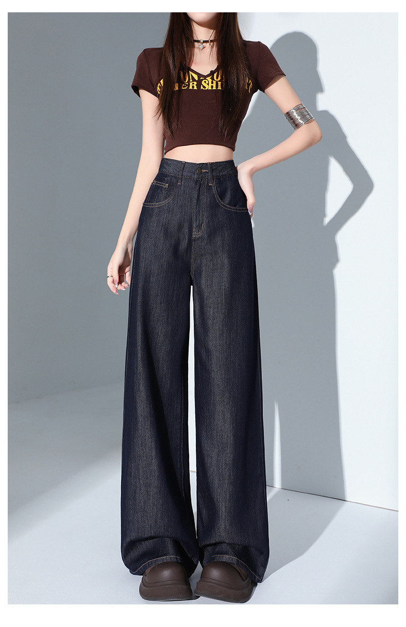 여성용 다크 스카이 텐셀 청바지 2025 여름 하이 웨이스트 루즈 슬리밍 드레이프 디자인 아이스 실크 와이드 레그 바닥 길이 바지스토어 가기