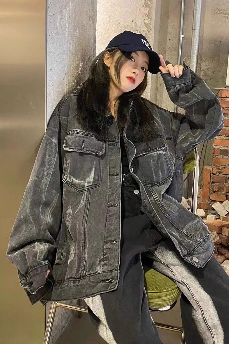 트렌디 브랜드 스타일 데님 재킷 봄, 가을 한국 스타일 트렌디 데님 재킷 여성 봄, 가을 새로운 캐주얼 재킷스토어 가기
