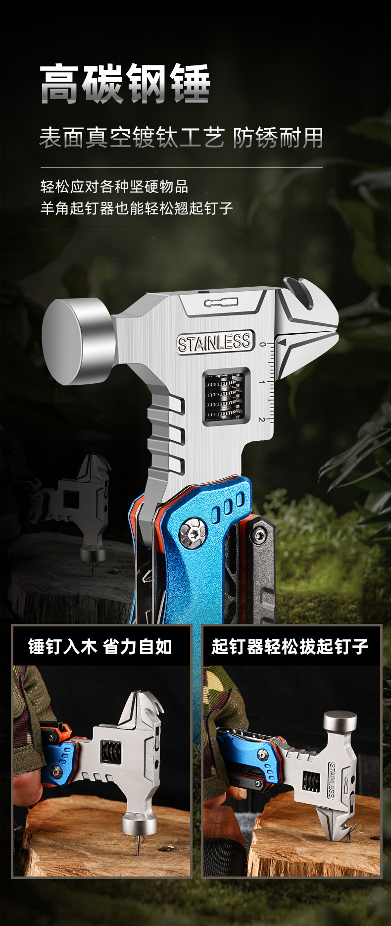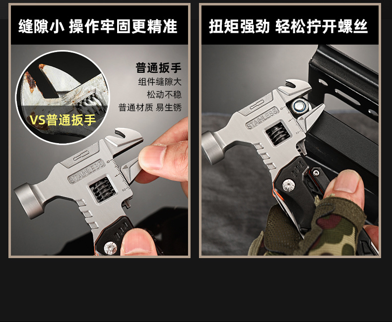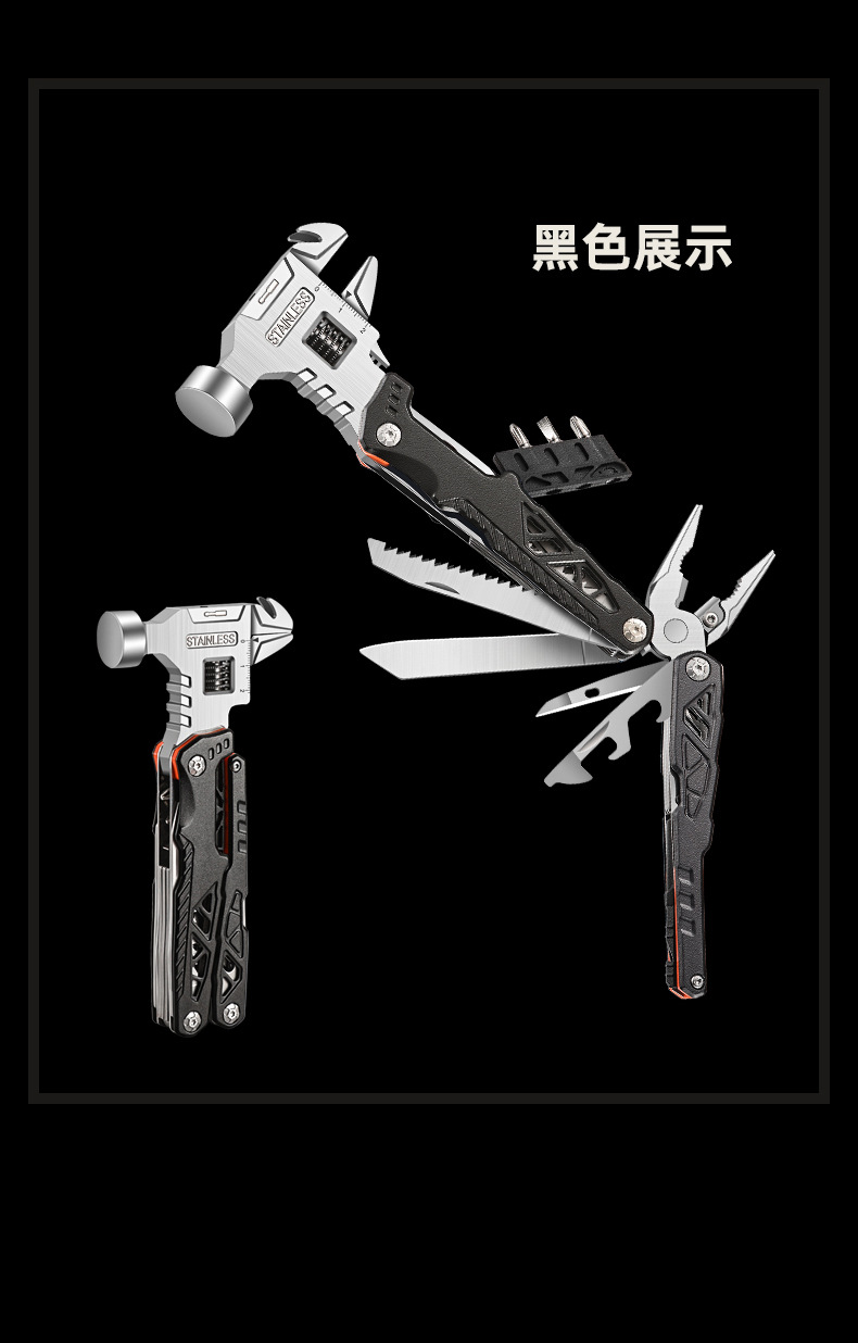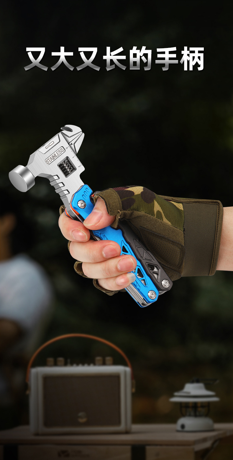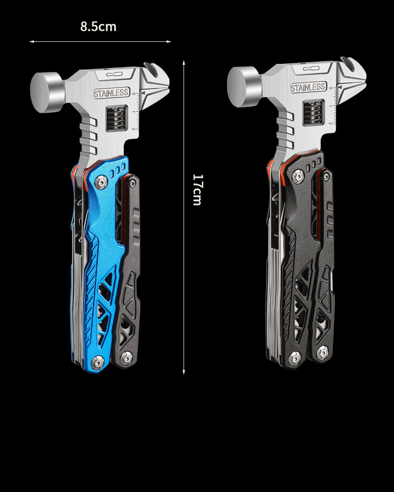 추천 도매 야외 캠핑 다기능 렌치 라운드 헤드 해머 스테인레스 스틸 접이식 네일 해머 펜치 비상 차량 세트스토어 가기