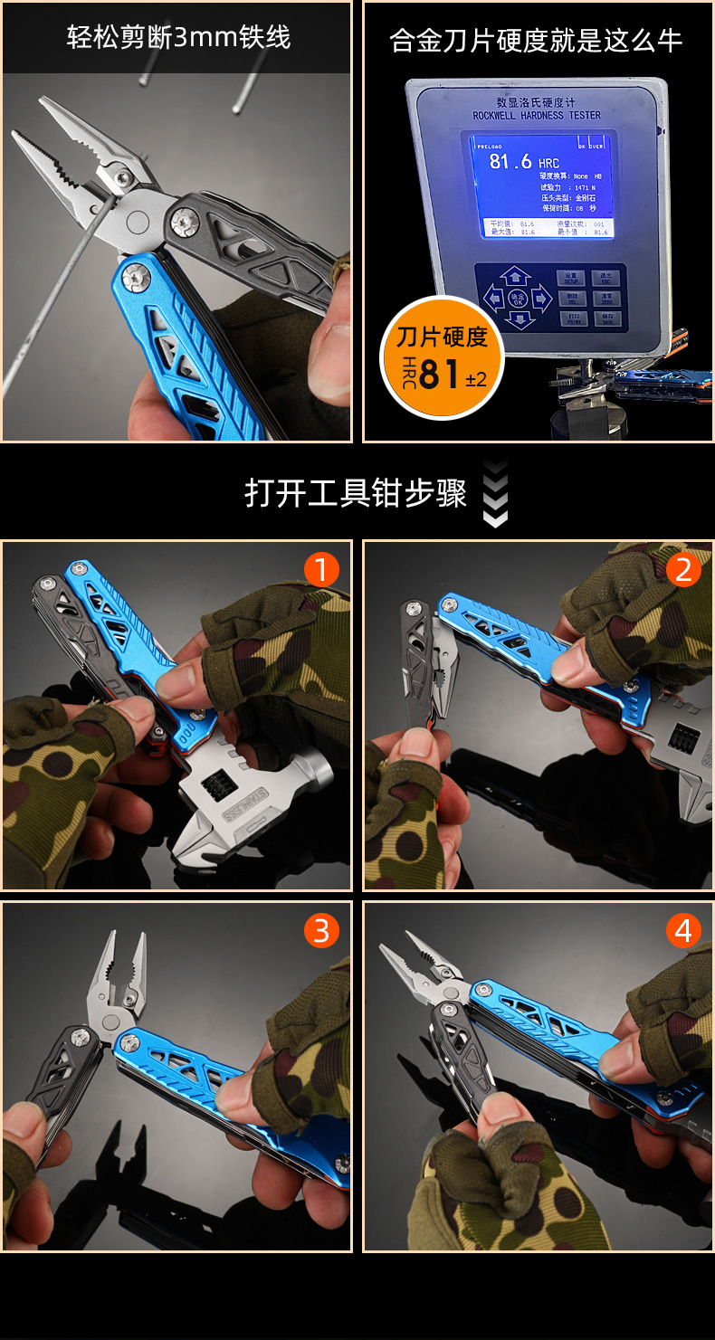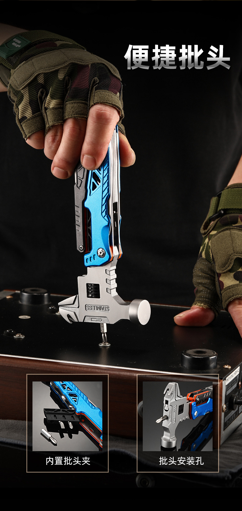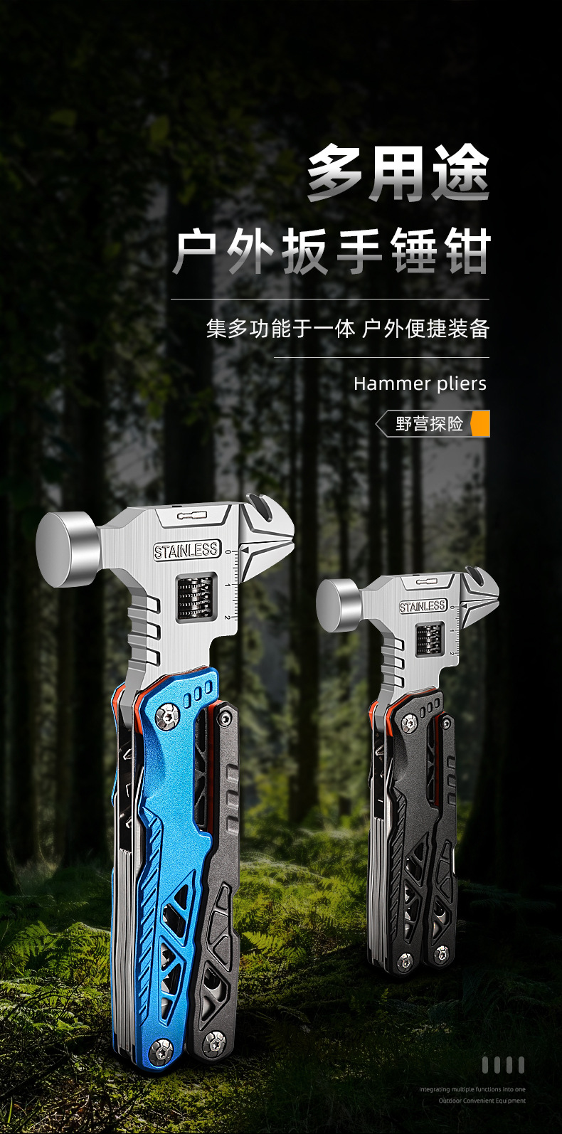 추천 도매 야외 캠핑 다기능 렌치 라운드 헤드 해머 스테인레스 스틸 접이식 네일 해머 펜치 비상 차량 세트스토어 가기