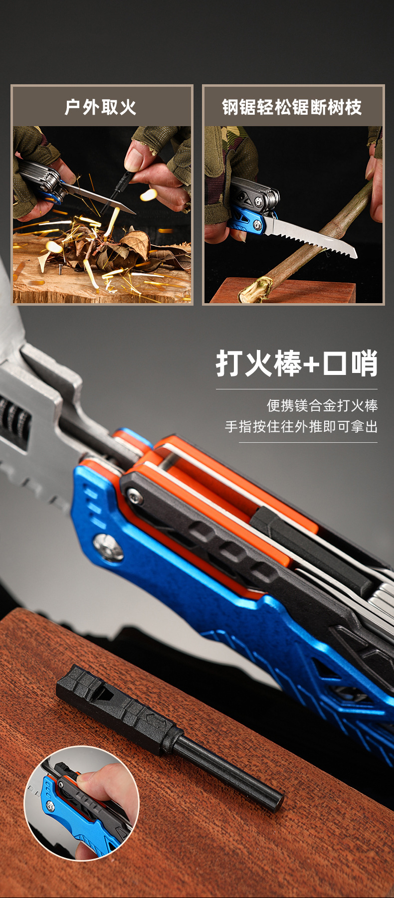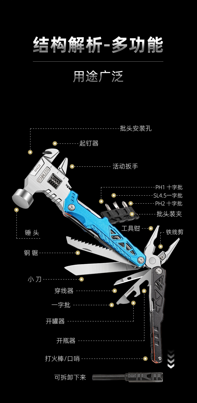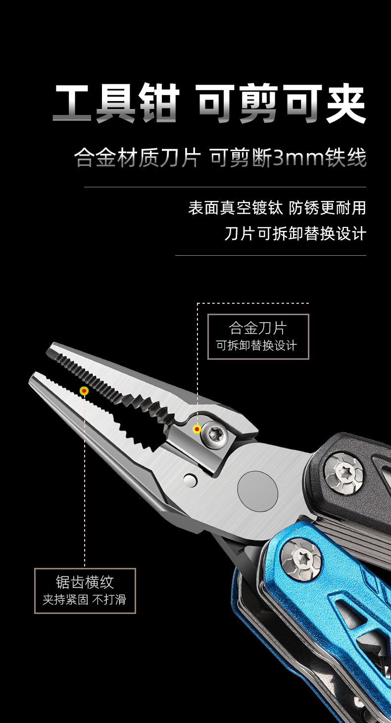 추천 도매 야외 캠핑 다기능 렌치 라운드 헤드 해머 스테인레스 스틸 접이식 네일 해머 펜치 비상 차량 세트