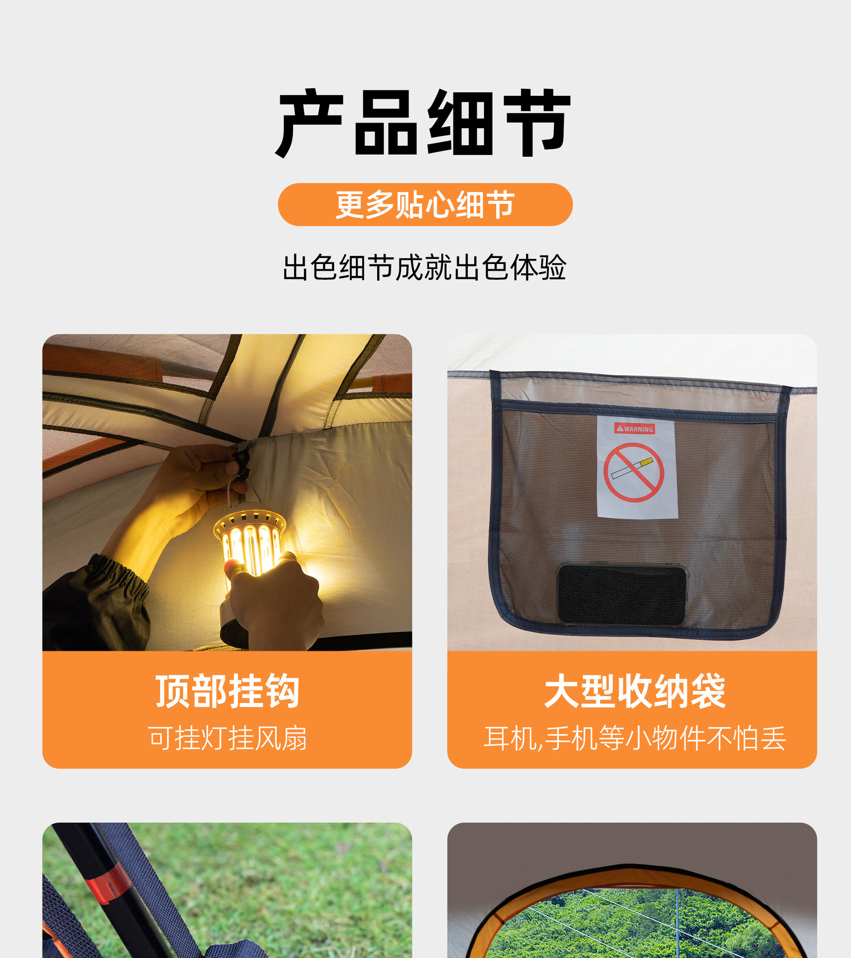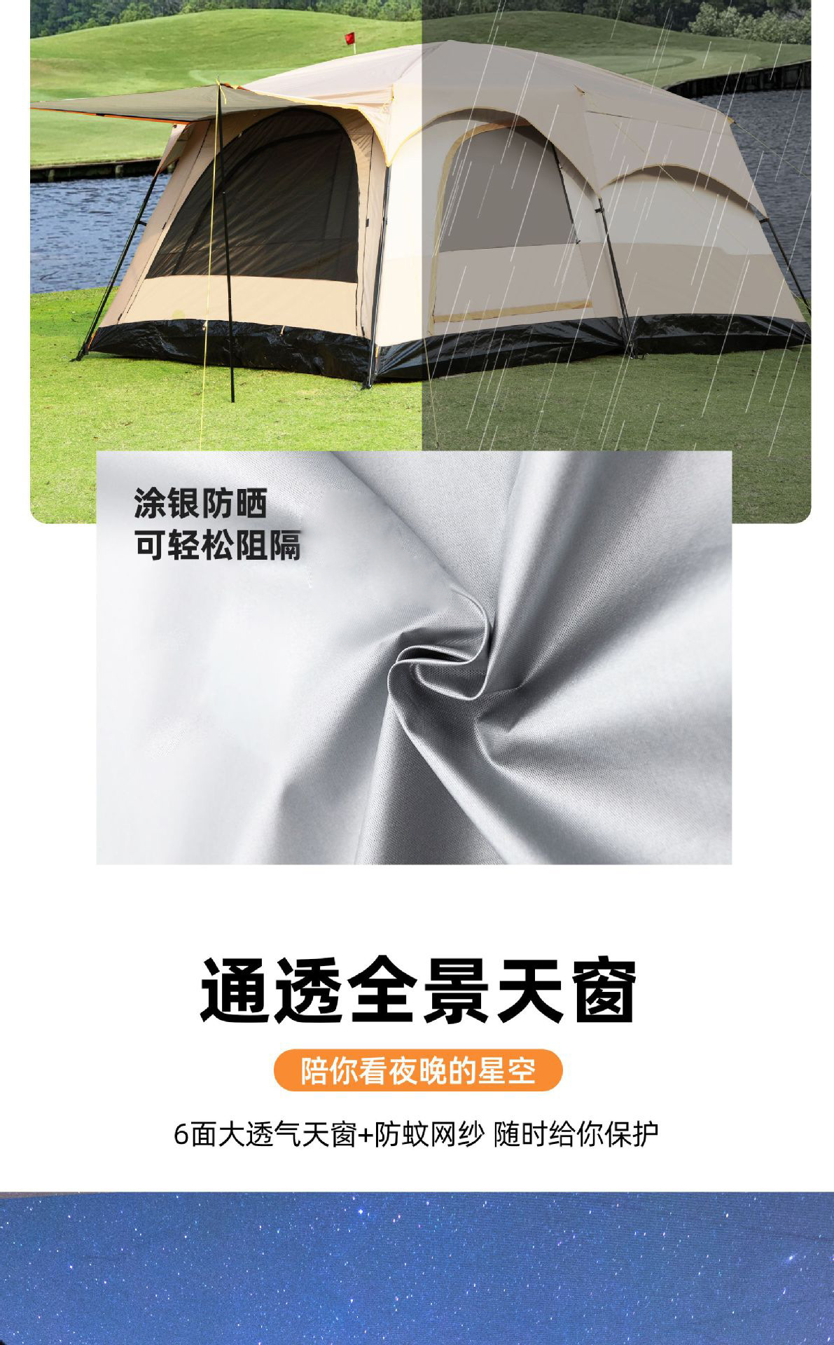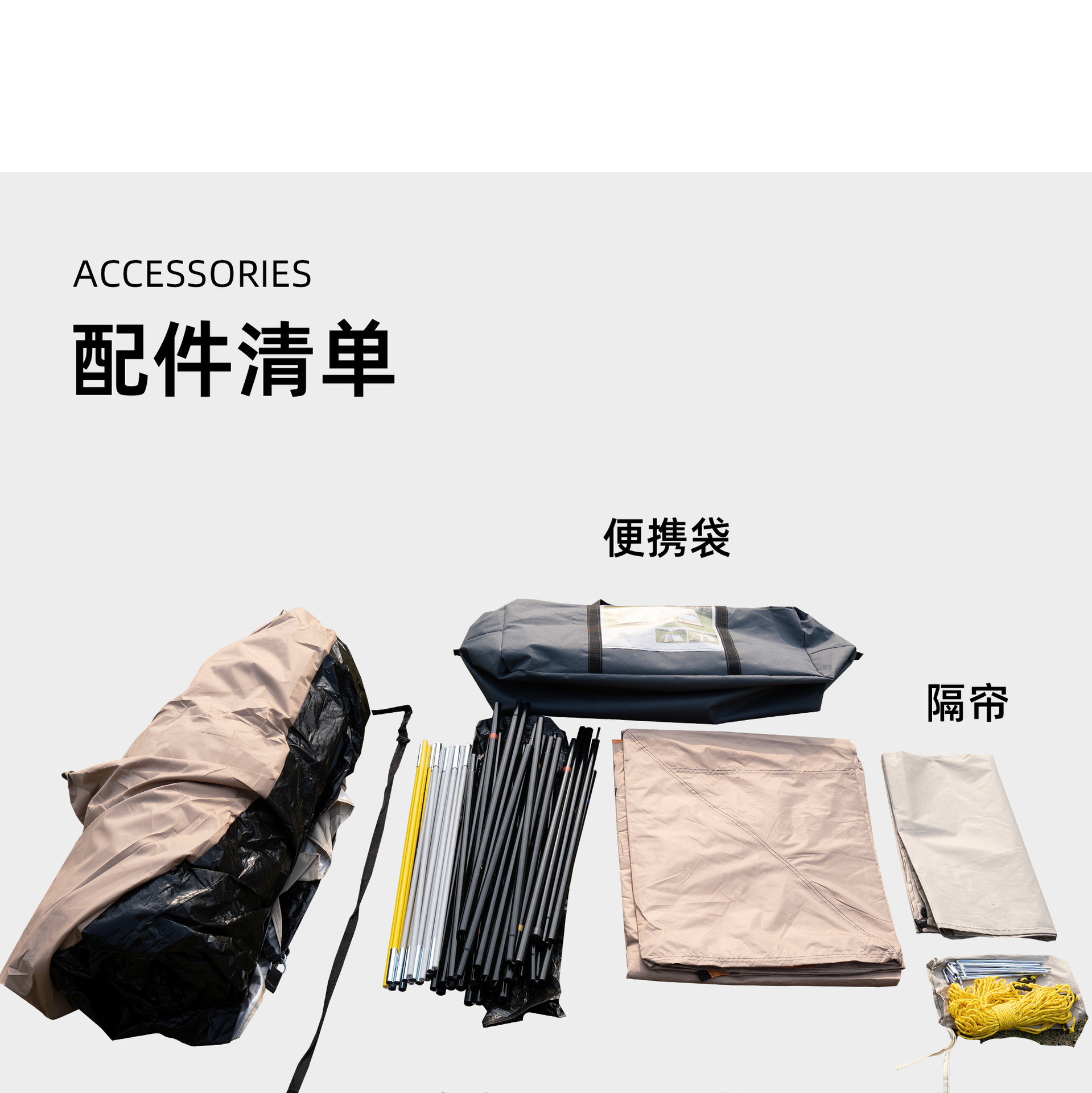 • (소형 반팩) 카키색 침실 2개, 거실 1개 차양 모델 4~6인용