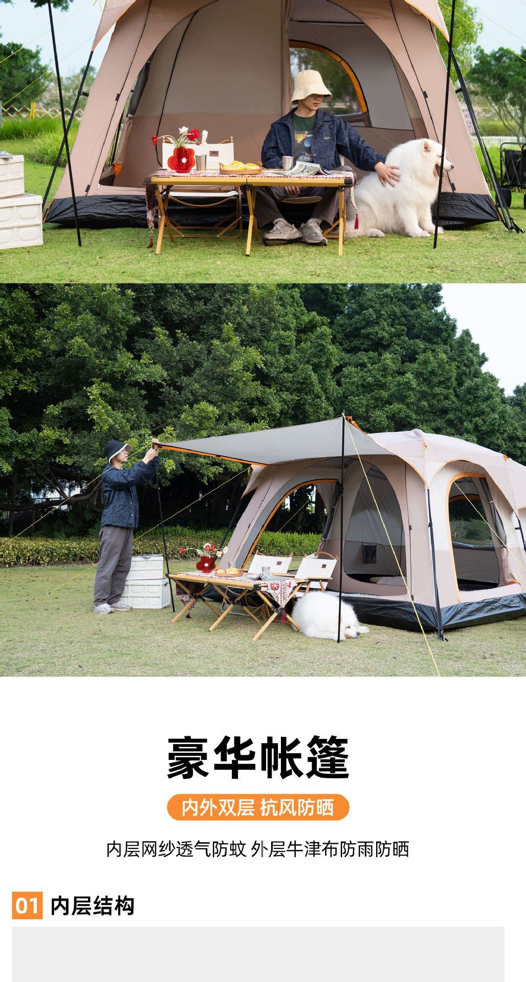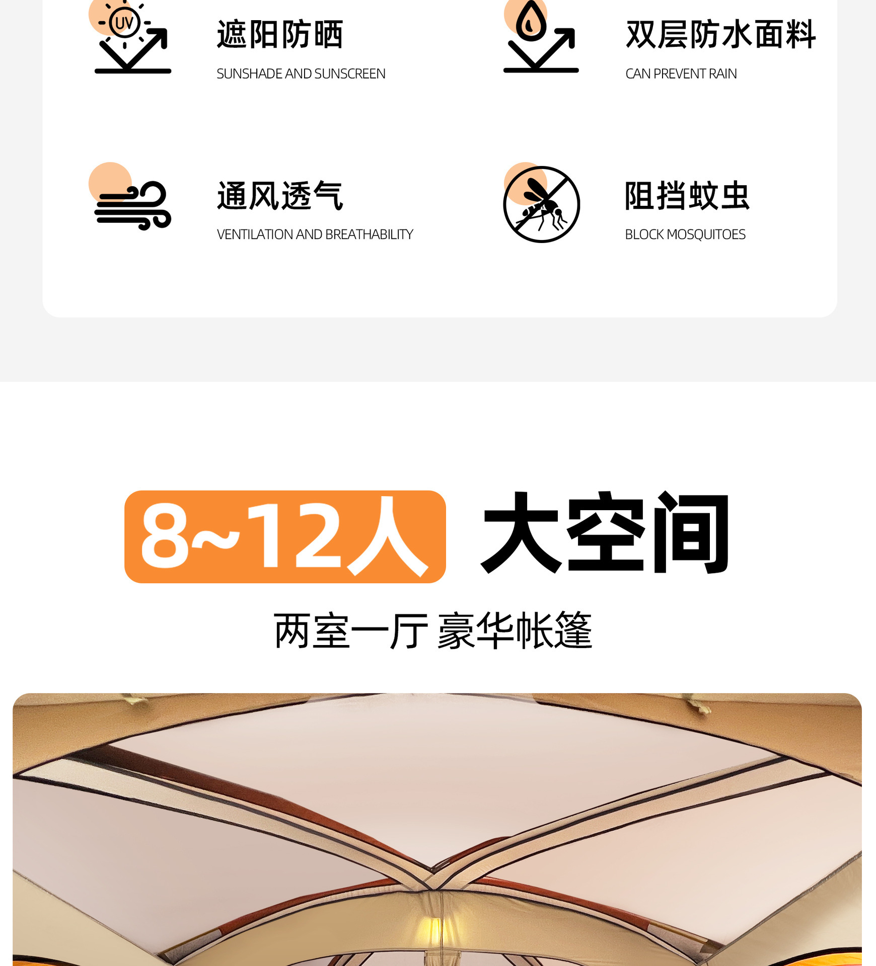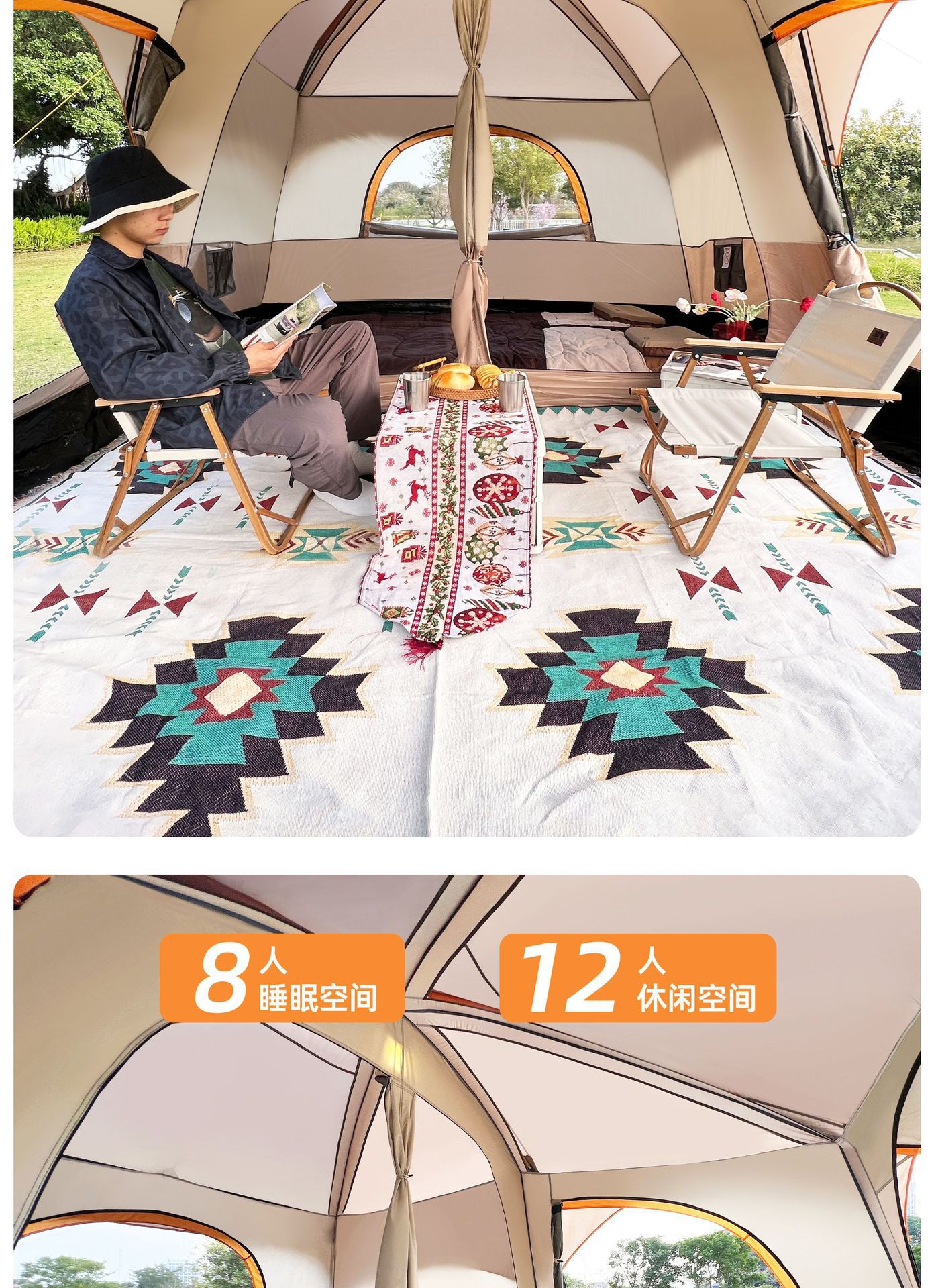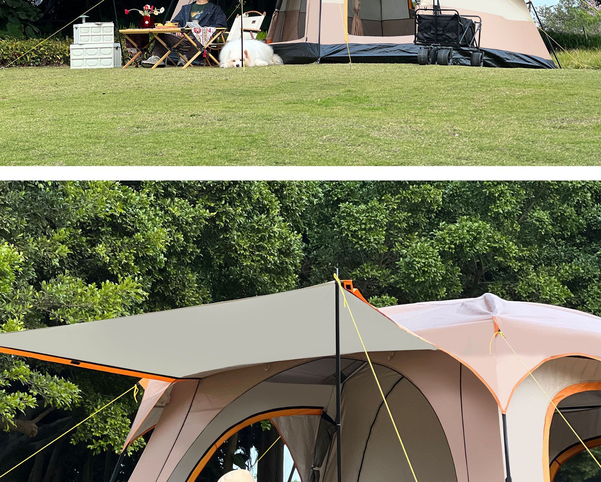 2 개의 방과 1 개의 홀 두꺼운 방폭 방풍 방수 큰 텐트 야외 접이식 휴대용 캠핑 바베큐