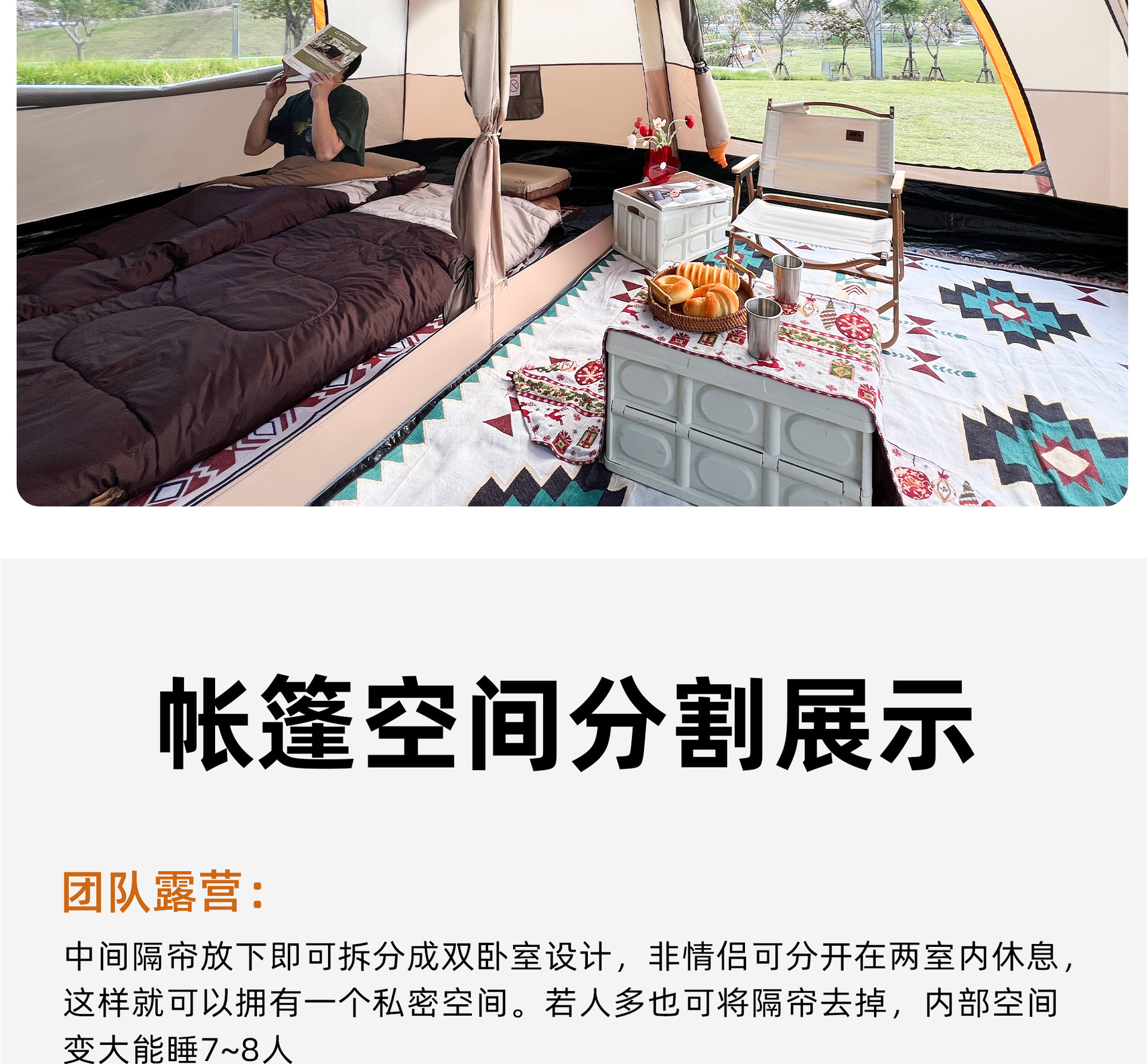 2 개의 방과 1 개의 홀 두꺼운 방폭 방풍 방수 큰 텐트 야외 접이식 휴대용 캠핑 바베큐스토어 가기