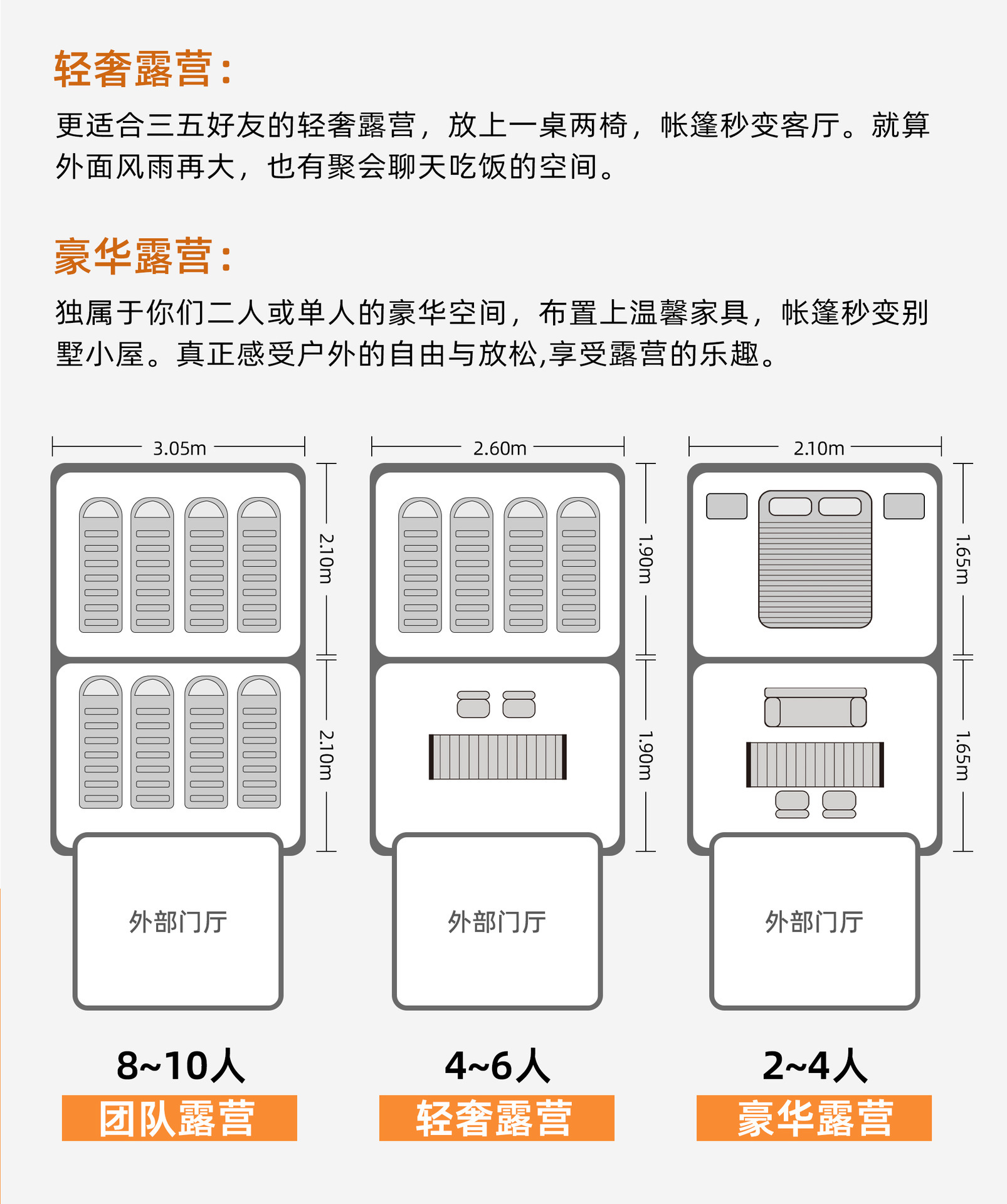 • (대형 반팩) 오렌지 침실 2개, 거실 1개 차양 모델 8~12인