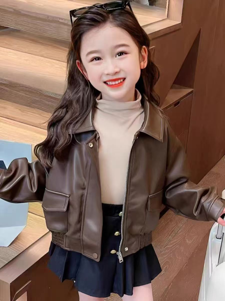 여아 코트 봄, 가을 2025 새로운 스타일 아동 가을 캐주얼 탑 아기 유행 가을 짧은 가죽 코트스토어 가기
