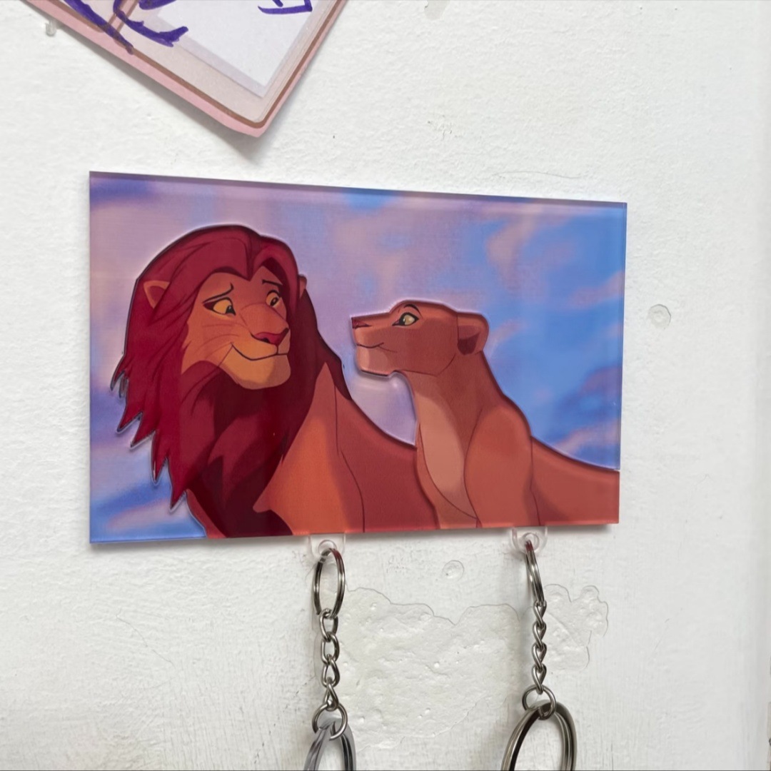 창조적 인 카드 세트 라이온 킹 나나 커플 아크릴 심바 펜던트 키 체인 냉장고 스티커 벽 스티커 장식 선물스토어 가기