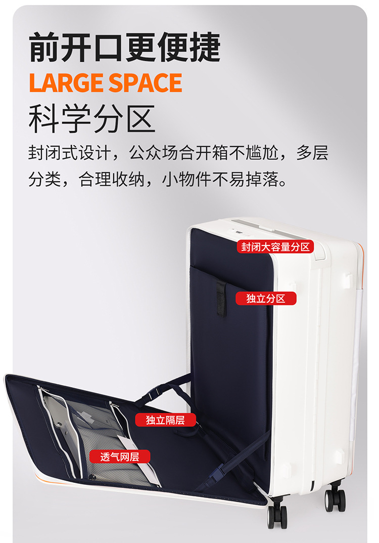 1:9 깊은 창고 넓은 당기기 수하물 상자 20 인치 새로운 프론트 오프닝 탑승 여행 알루미늄 프레임 24 대용량
