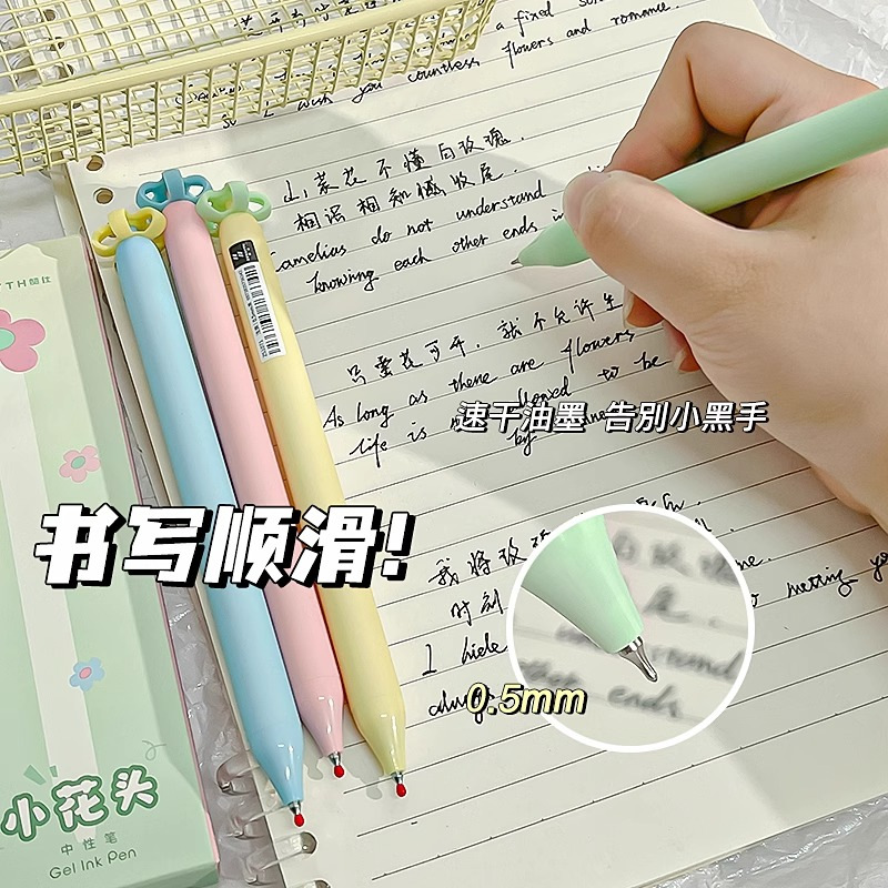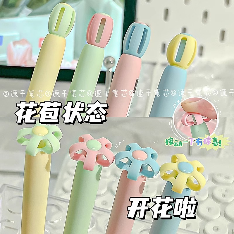 Zan Shi 작은 꽃 헤드 프레스 젤 펜 크리 에이 티브 감압 꽃 모양 펜 속건성 CS 더블 비드 브러쉬 펜 검정색 펜