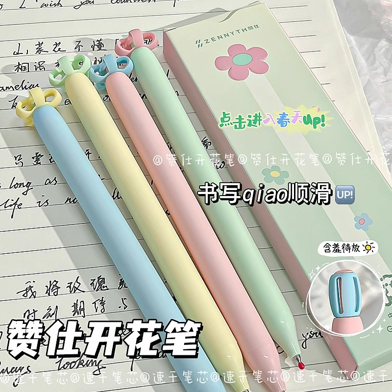 Zan Shi 작은 꽃 헤드 프레스 젤 펜 크리 에이 티브 감압 꽃 모양 펜 속건성 CS 더블 비드 브러쉬 펜 검정색 펜스토어 가기