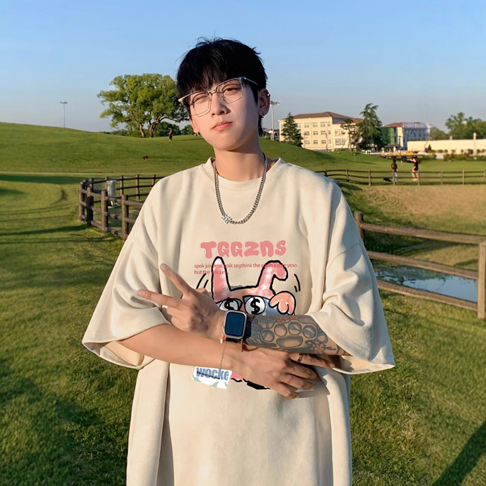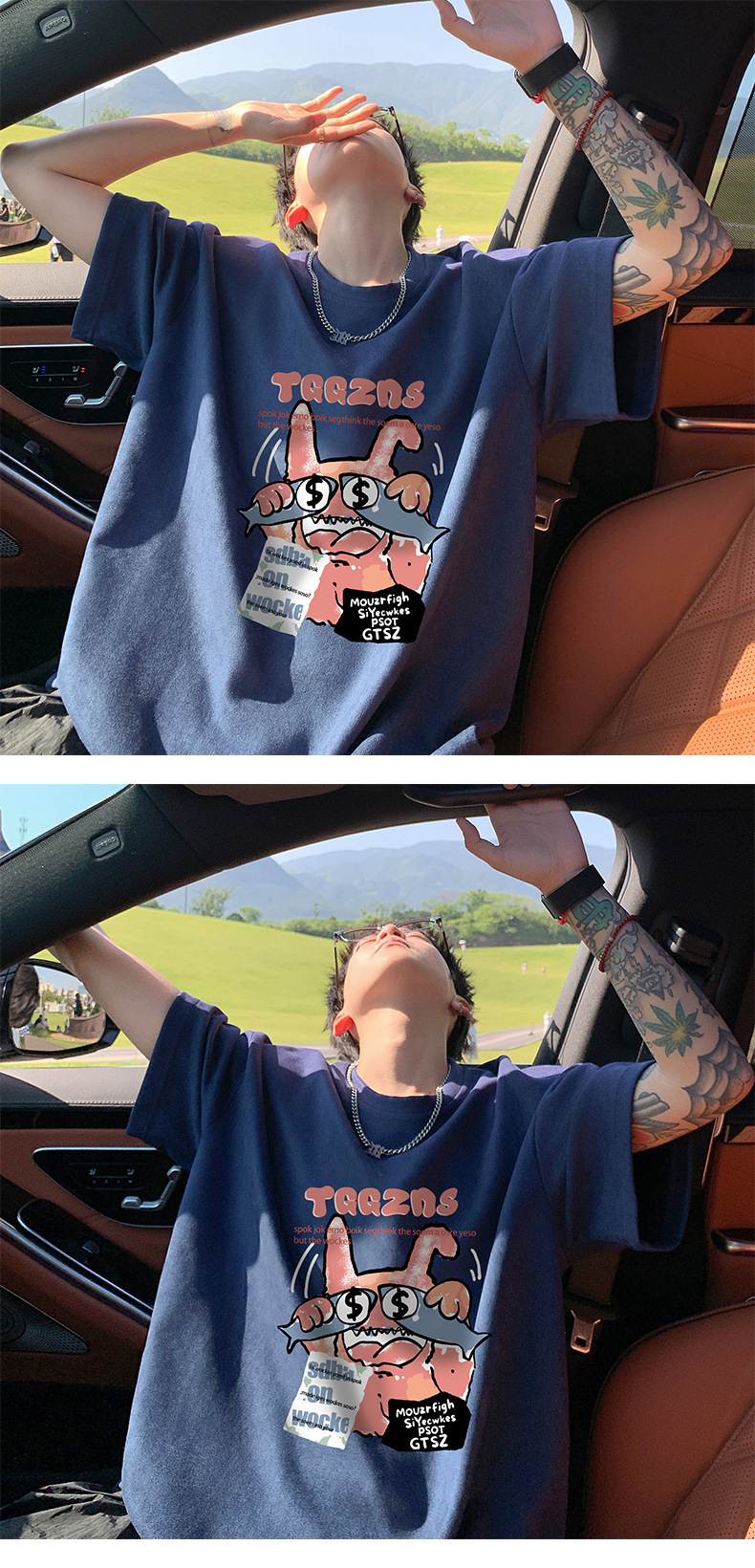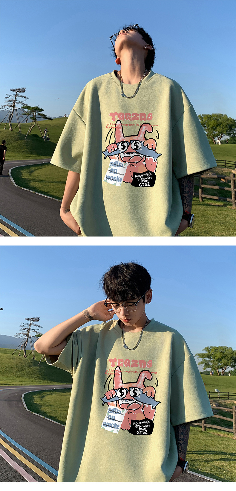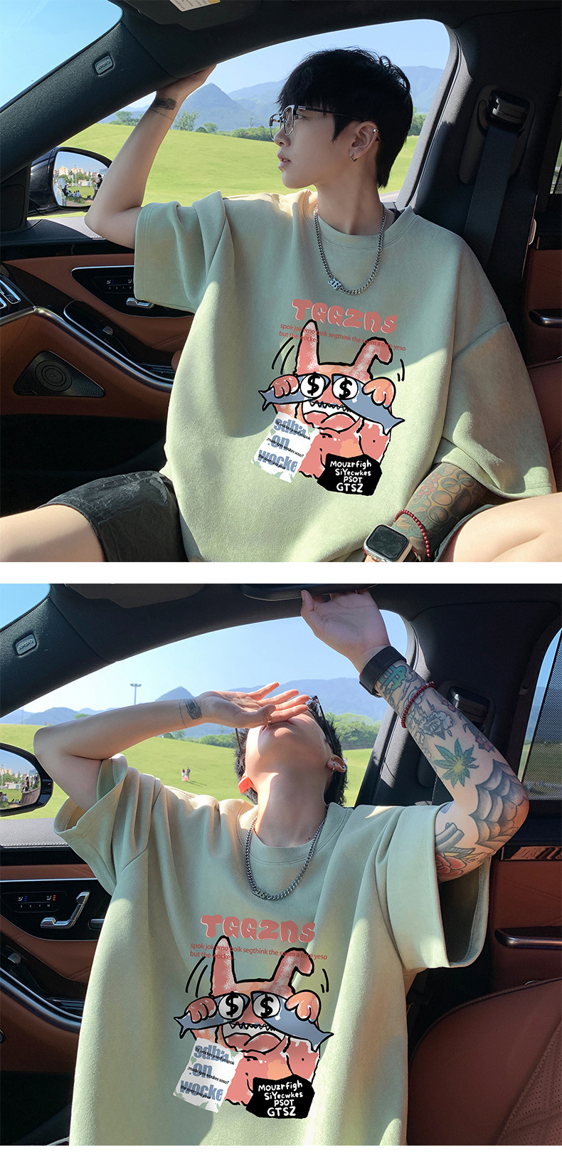 2025년 여름 남성용 미국 헤비급 반팔 티셔츠 새로운 만화 문자 인쇄 잘 생긴 청소년 라운드 넥 반팔스토어 가기