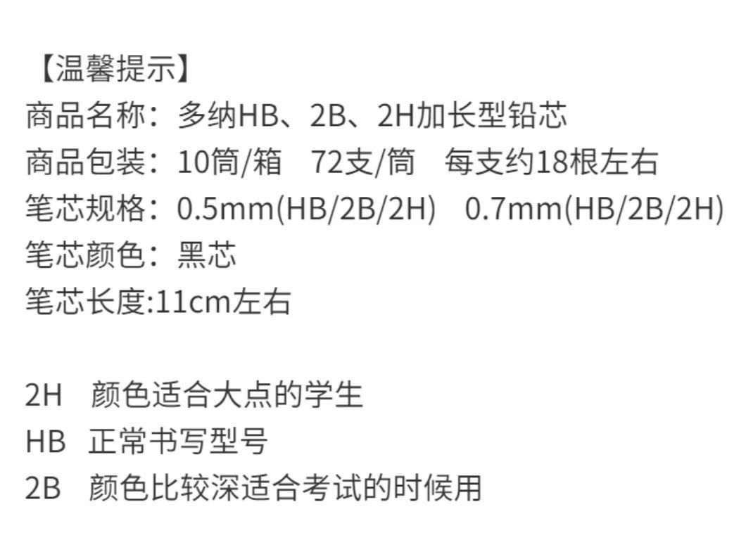 도나 수지 리드 자동 리필 0.5mm0.7mm 연필 리필 HB 2B 2H 액티브 리드 리필