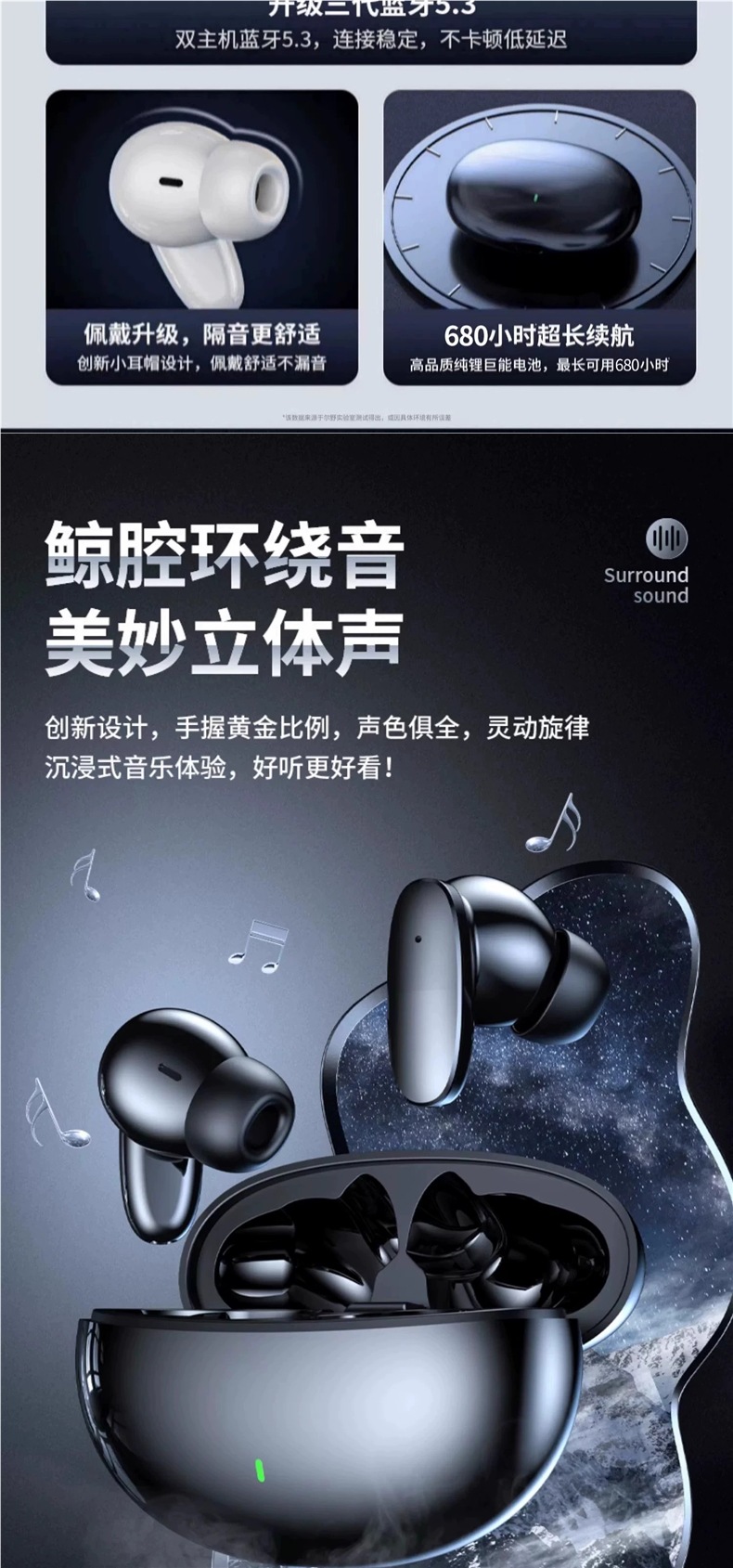 • 공식 슈프림 블랙 [천위안 히스텐 음향 효과★배터리 수명 300% 증가★심층적인 소음 감소★지연감이 없습니다.]
