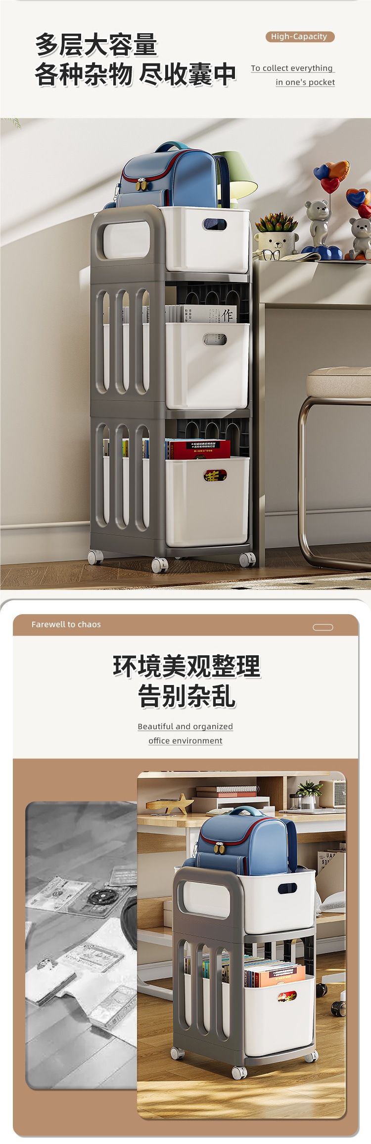 두꺼운 책장 보관함, 학생용 가방 보관함, 이동식 트롤리, 가정용 책 보관함
