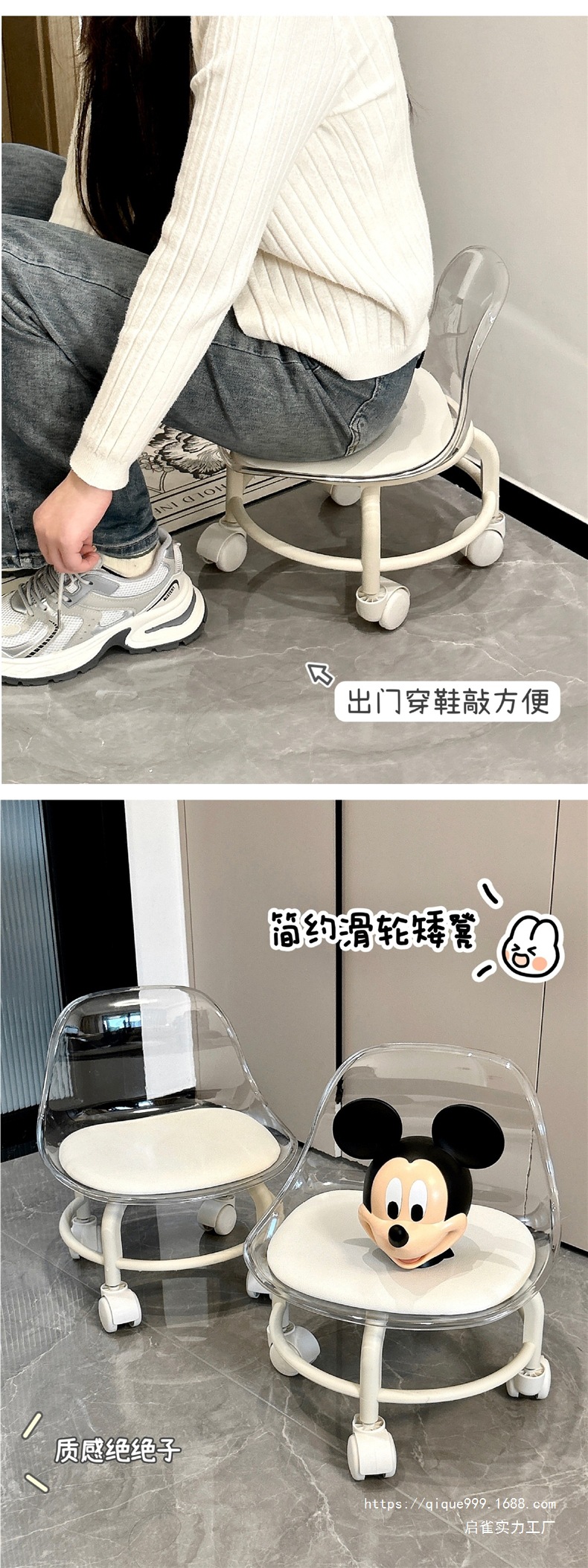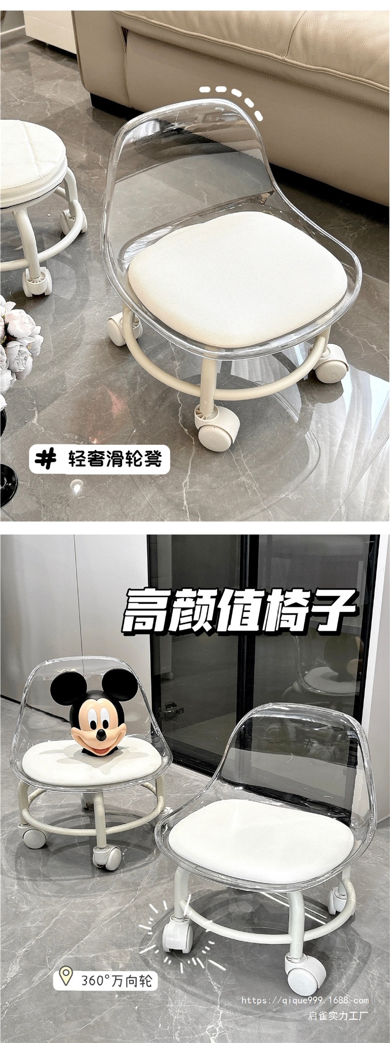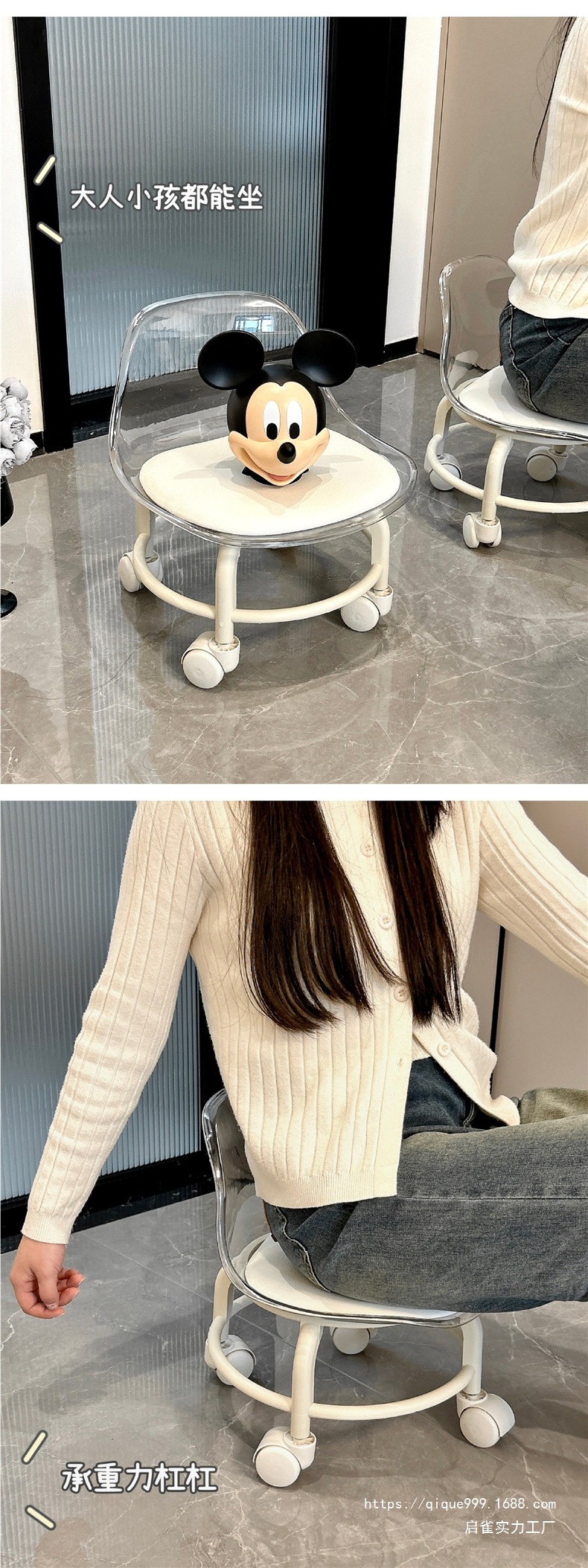 아크릴 유니버설 휠 작은 의자 부드러운 좌석 풀리 낮은 의자 조용한 어린이 등받이 의자 가정용 소파 의자 둥근 의자스토어 가기