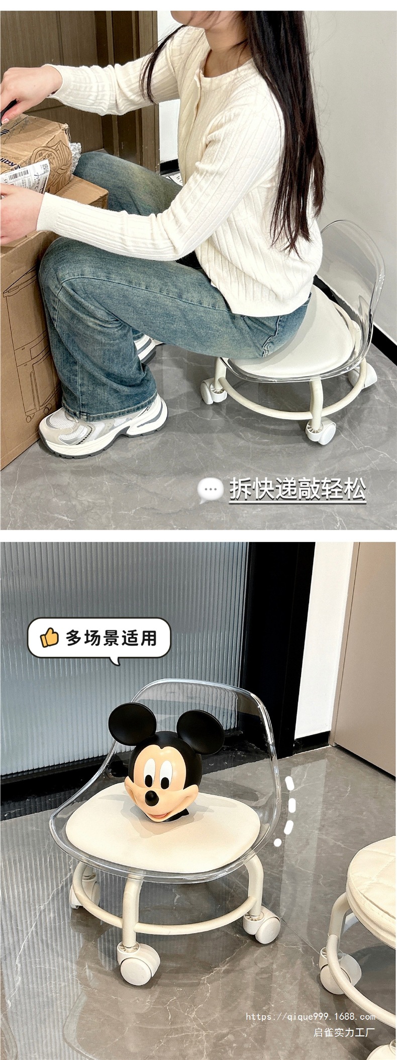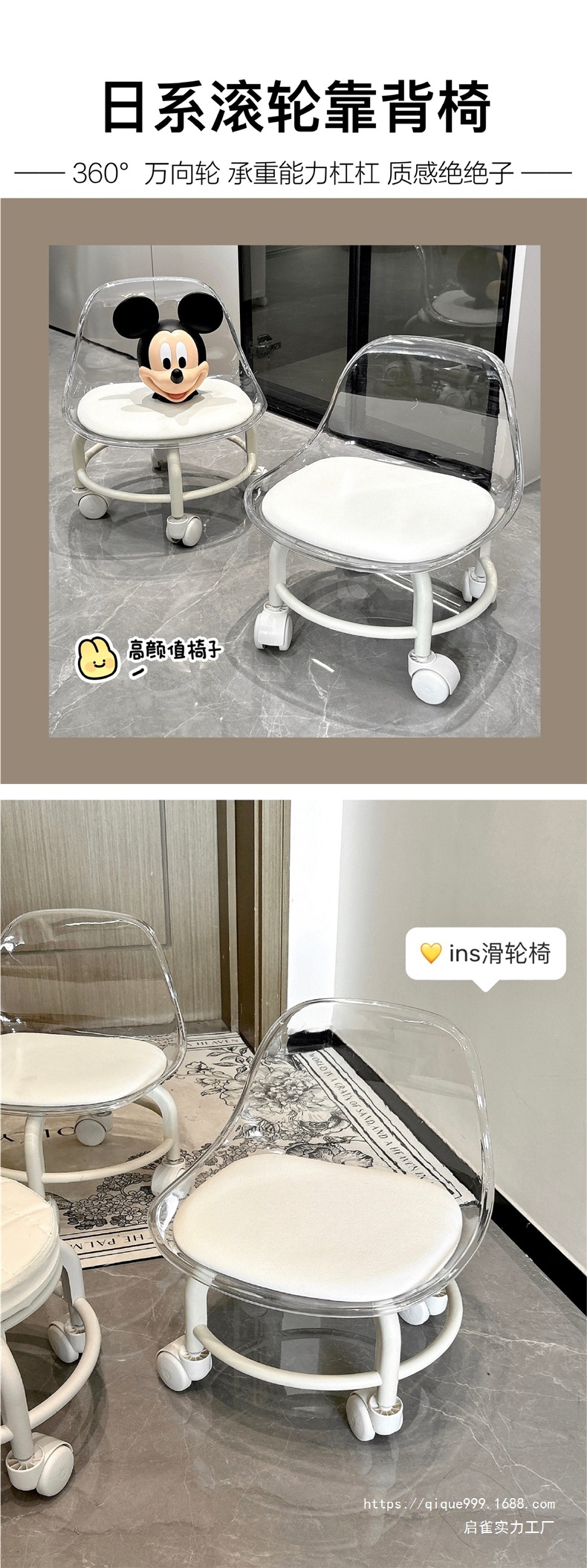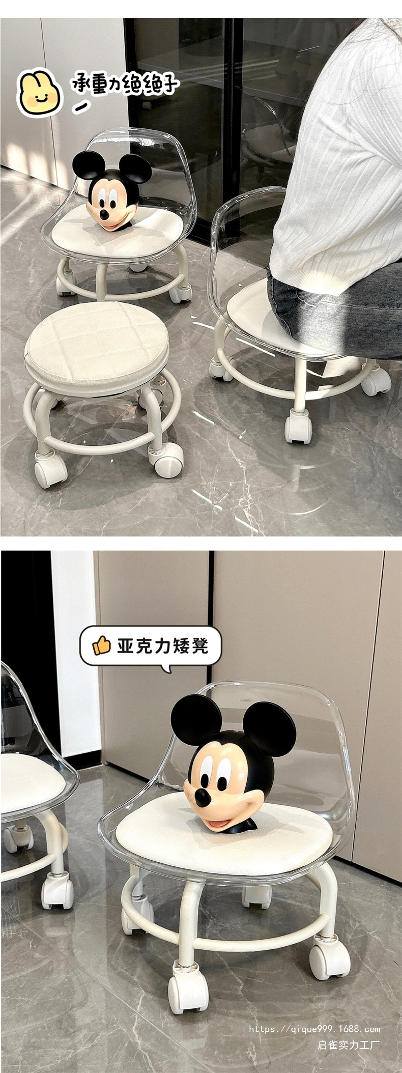 아크릴 유니버설 휠 작은 의자 부드러운 좌석 풀리 낮은 의자 조용한 어린이 등받이 의자 가정용 소파 의자 둥근 의자스토어 가기