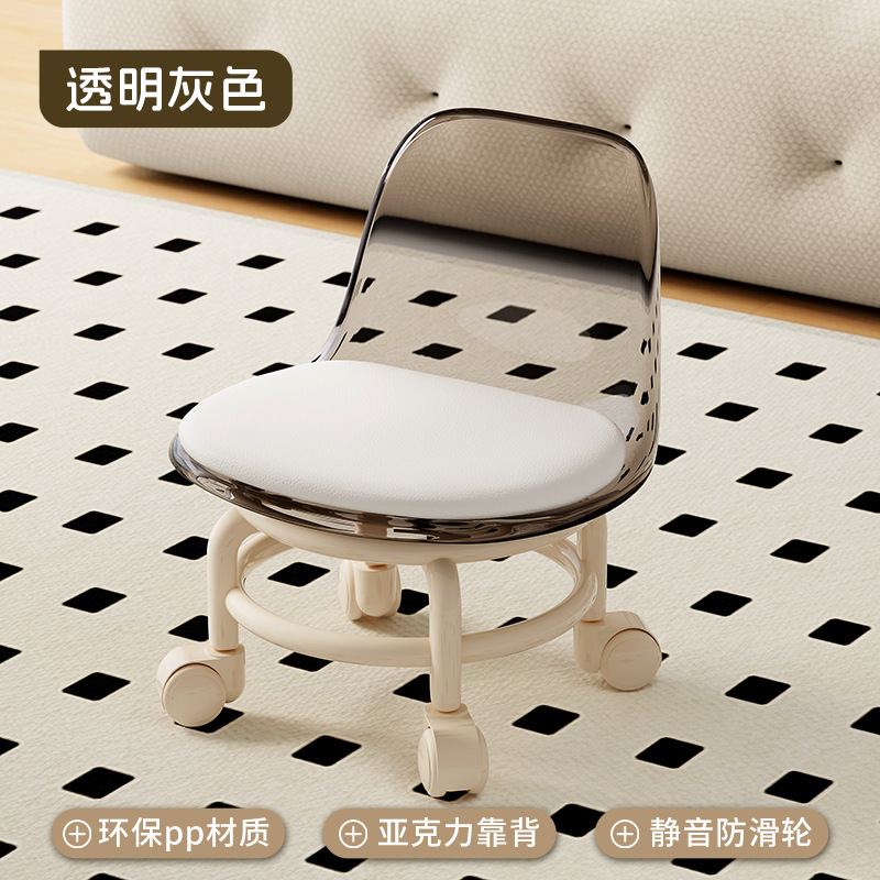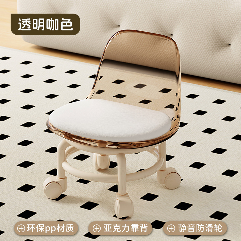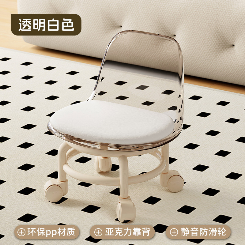 아크릴 유니버설 휠 작은 의자 부드러운 좌석 풀리 낮은 의자 조용한 어린이 등받이 의자 가정용 소파 의자 둥근 의자